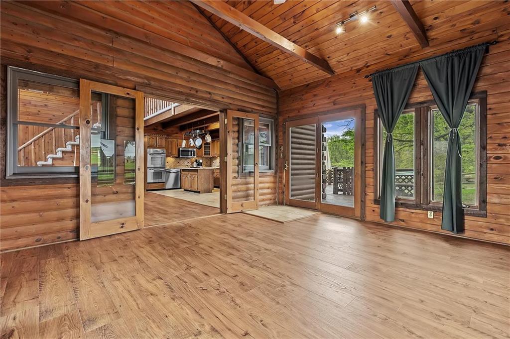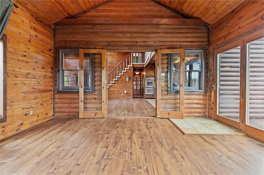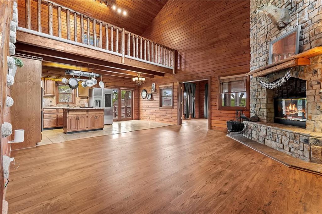 Rare opportunity to own two homes on 9.70± acres! The main home features 3-bedrooms plus a non-conforming 4th, 3 full-bathrooms, soaring ~25-ft vaulted ceilings, newer flooring throughout, a finished basement, and a 1-car attached garage with carport. The guest home offers 2-bedrooms, 2-full bathrooms, accessibility features, newer flooring, and an enclosed hallway connecting to the 30'x30' 3-car garage for true main-level living. The property showcases a beautiful mix of woods and pasture, a large front pond with dock, and full perimeter fencing—with nearly 5 acres separately fenced, ideal for animals or a future build site. Truly a unique blend privacy, functionality, and rustic charm! Additional highlights include a new 2-car bay garage door, wood-burning fireplace in living room, spacious front porches on both homes, EV charger, hen house, chicken coop, and horse corral. Don't wait! Schedule a tour of this not-often-seen property today!