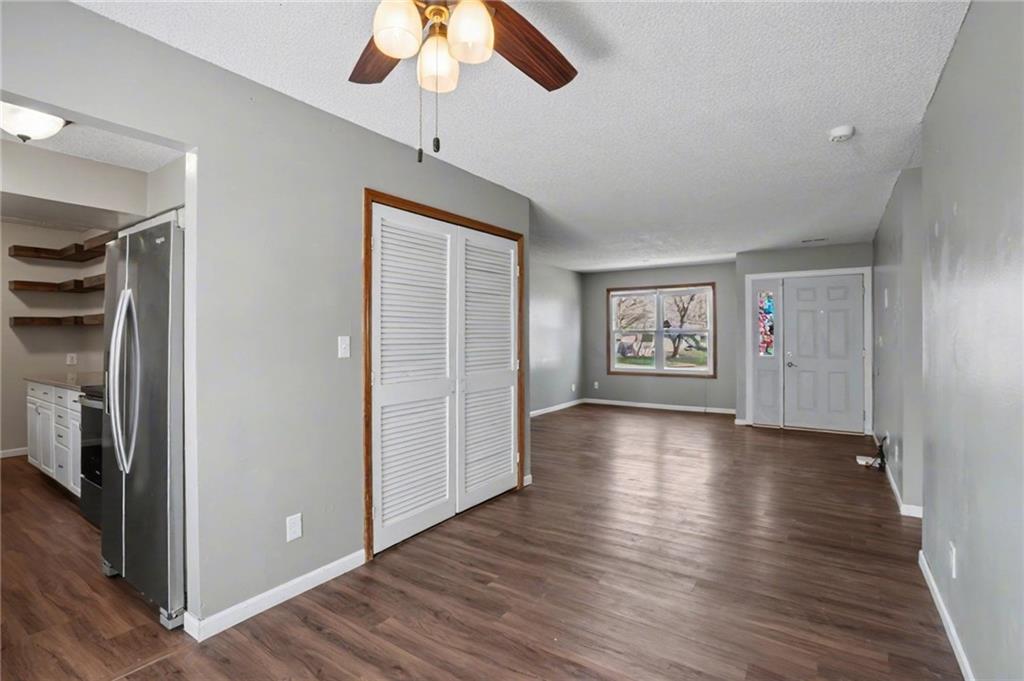 Well-maintained 3-bedroom, 2-bath ranch offering convenient one-level living in a Lawrence location. Check out this spacious living area featuring updated flooring and neutral finishes, providing a clean and versatile space ready for your personal touch. The functional layout flows into the dining area and kitchen, complete with ample cabinet storage, modern appliances, and added shelving for both style and convenience. All three bedrooms are located on the main level, including a primary suite with its own private bath. Enjoy outdoor living with a large backyard and deck—perfect for relaxing or entertaining. The attached 2-car garage provides plenty of room for parking and storage. Located in tucked away cul-de-sac location close to K-10 and ideal for Kansas City commuters.