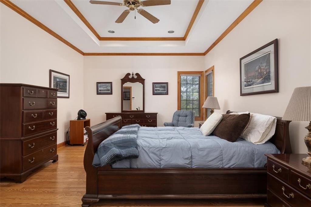 Well maintained home in the Alvamar Reserve, beautiful hardwood floors, Primary bedroom on the first floor, Freshly painted exterior, remodeled deck & fenced yard. Home has 2 kitchen areas, See through fireplace from living room and the hearth room, Washer and dryer hooks ups are available on main floor and the basement. Spacious walkout basement completes the picture. Home is located on a cul-de-sac. Neighborhood has mature trees sits on a large lot, features 5 bedrooms, 5 baths & large 3 car garage, impact resistant shingles. Must see!