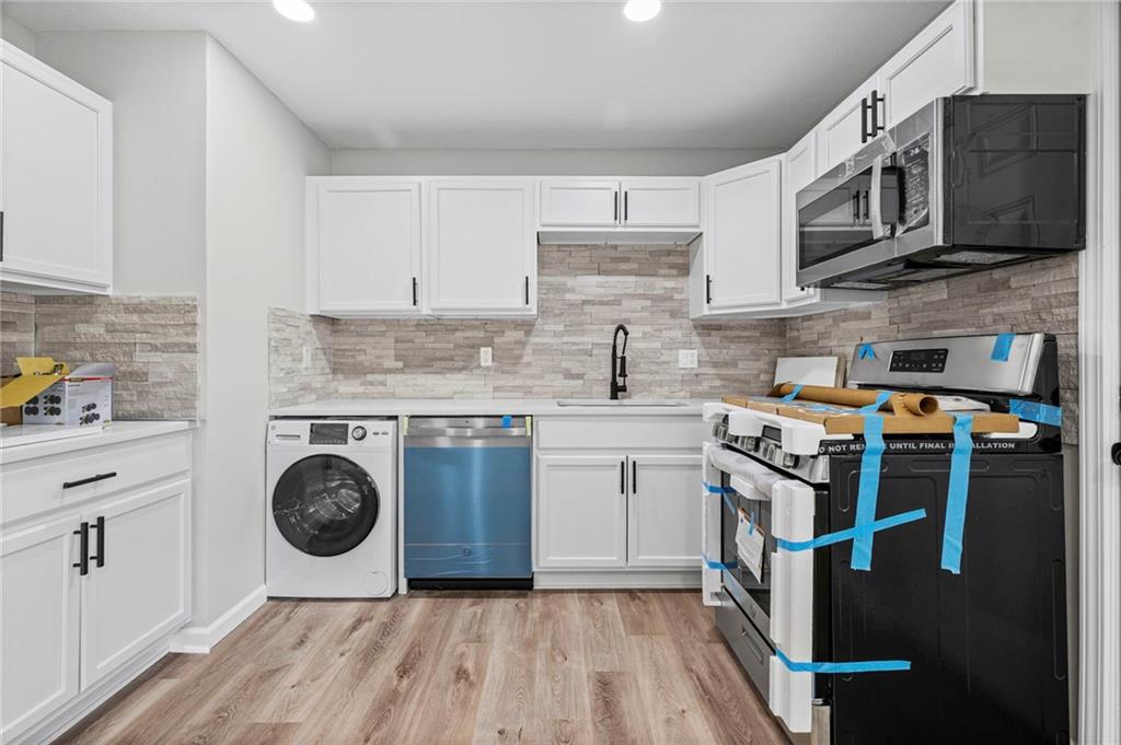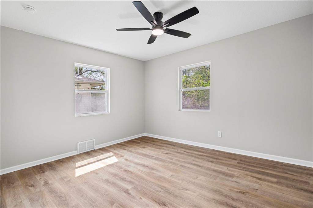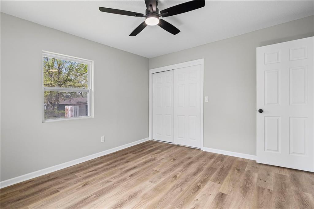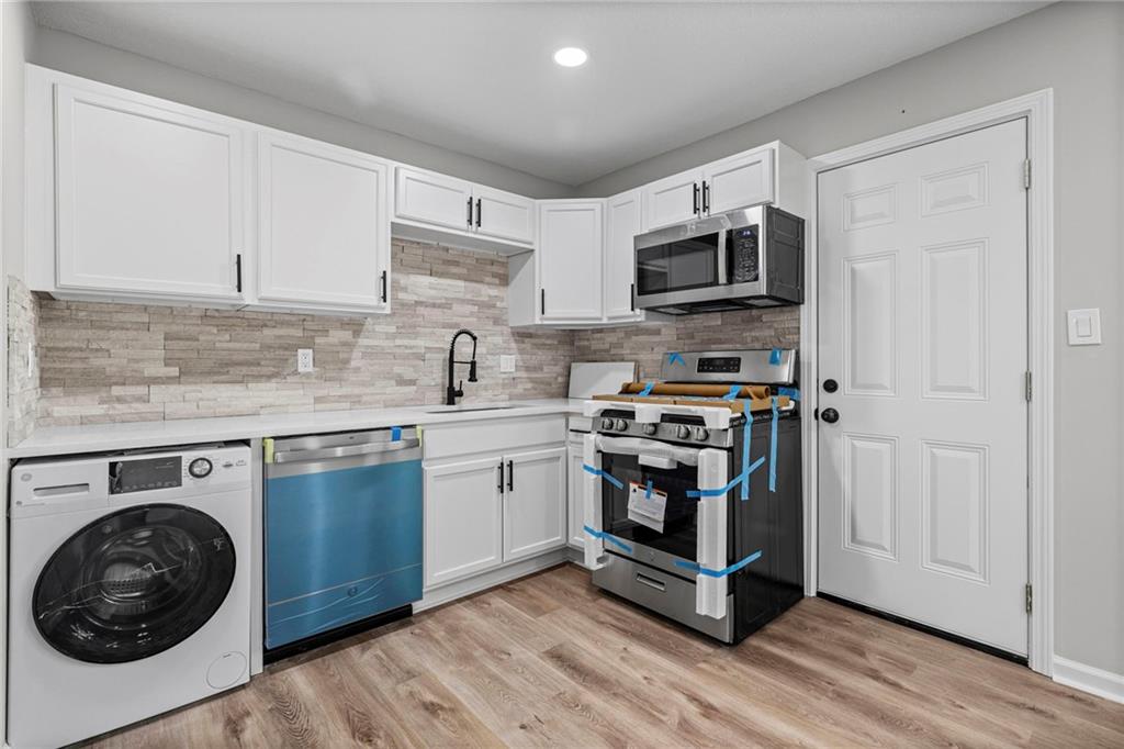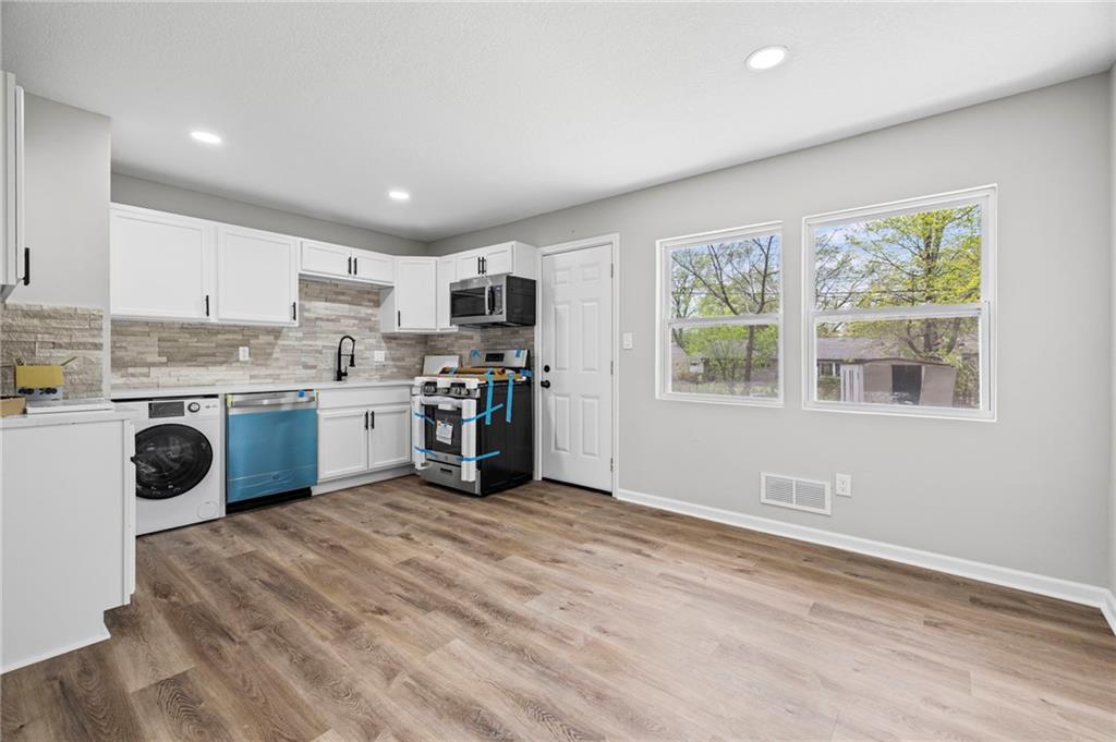 Top to bottom Remodel. New Roof 2026, All new exterior: New siding, Insulation, and blown insulation in Attic; New Windows, and New Garage Door. Comfortably situated on a quiet street, huge mature trees, and ready to go! All new kitchen and appliances, Stone backsplash, with a smartly integrated Washer and Drier combination in the kitchen. New kitchen cabinets, Gas Range, Dishwasher, granite tops, and new vinyl plank flooring. Generous living, and huge primary bedroom! Completely renovated bath, with fixtures, new vanity, new toilet, New HVAC, and Water Heater. New Doors, all light fixtures, and hardware throughout. New exterior lighting to include motion detection. New driveway and approach. Freshly seeded front and back lawn, and newly installed landscaping. Bring your choosiest! This home is Awesome!