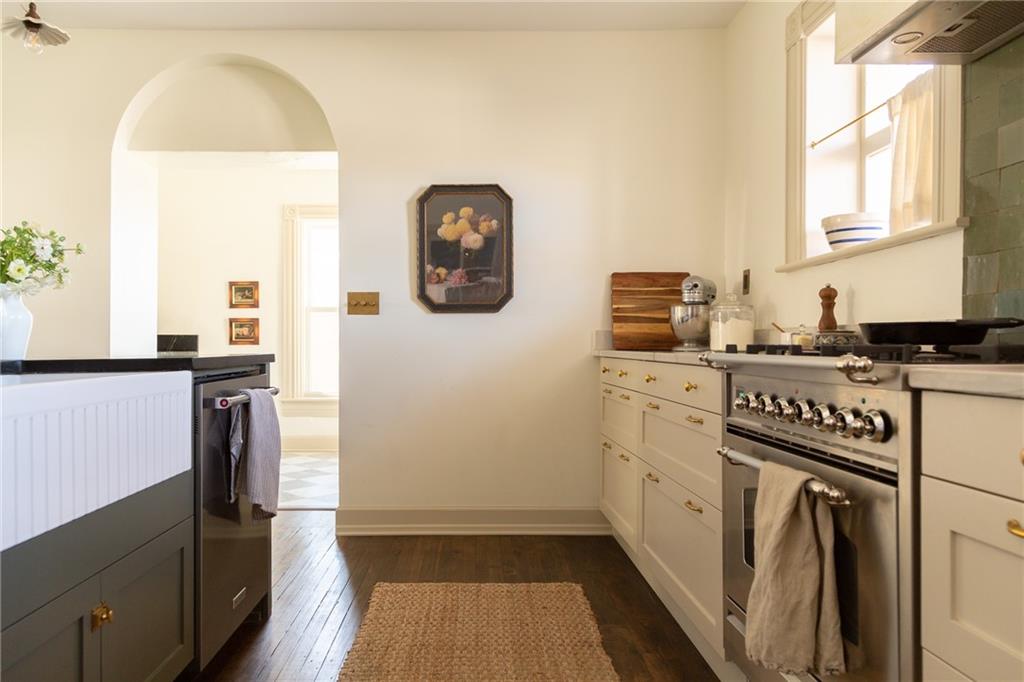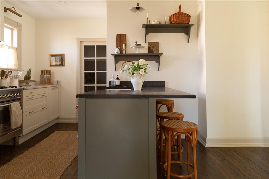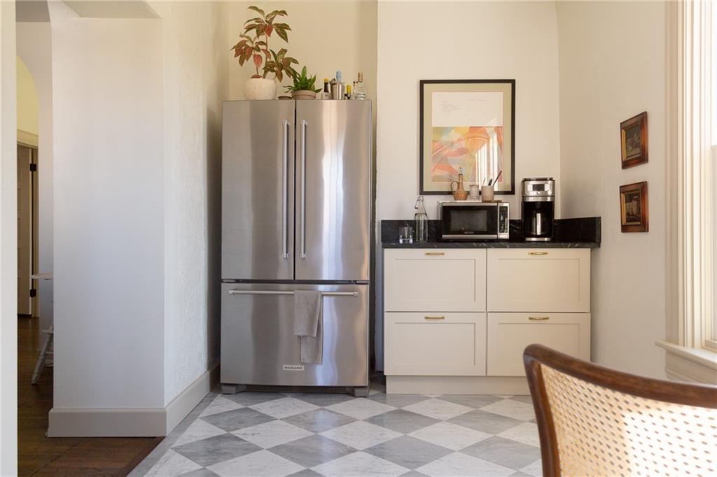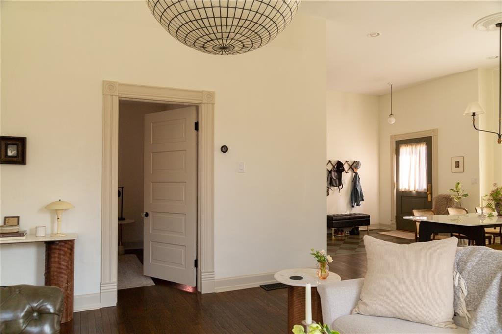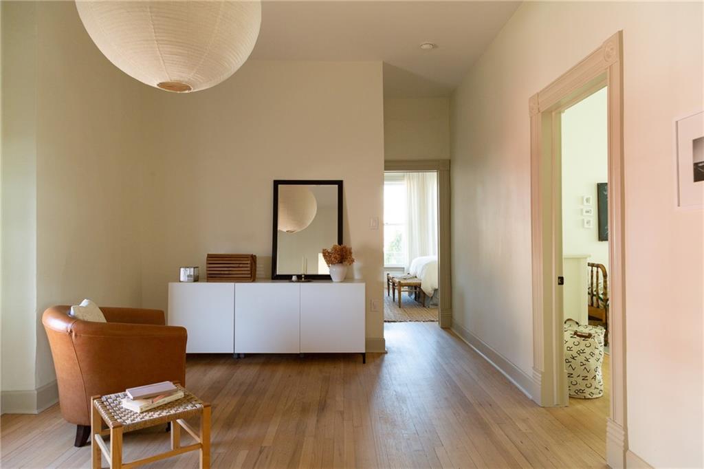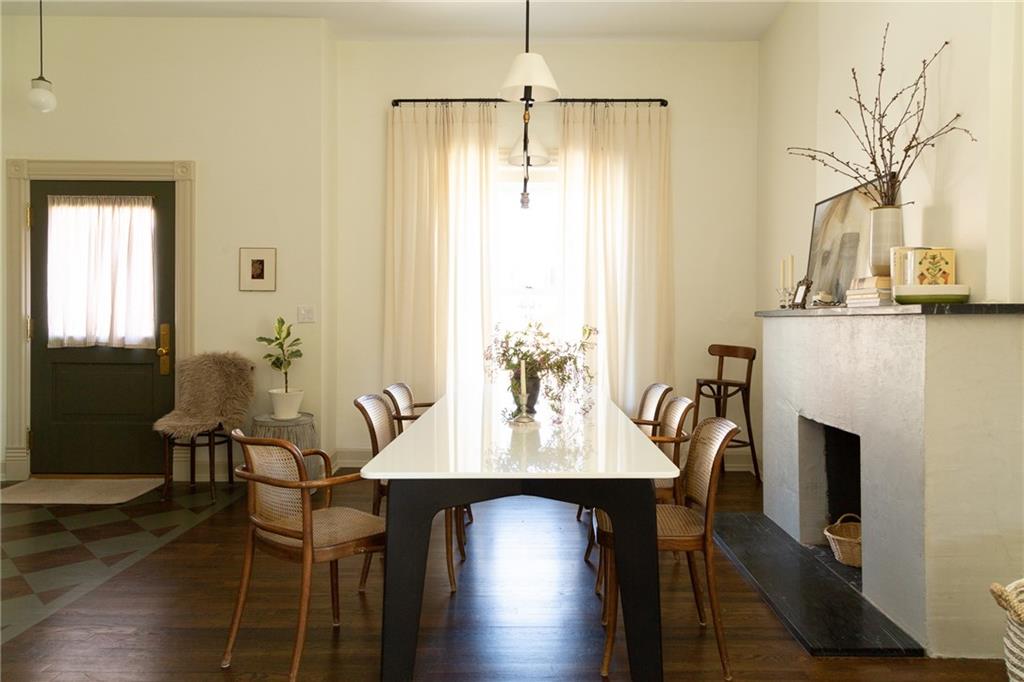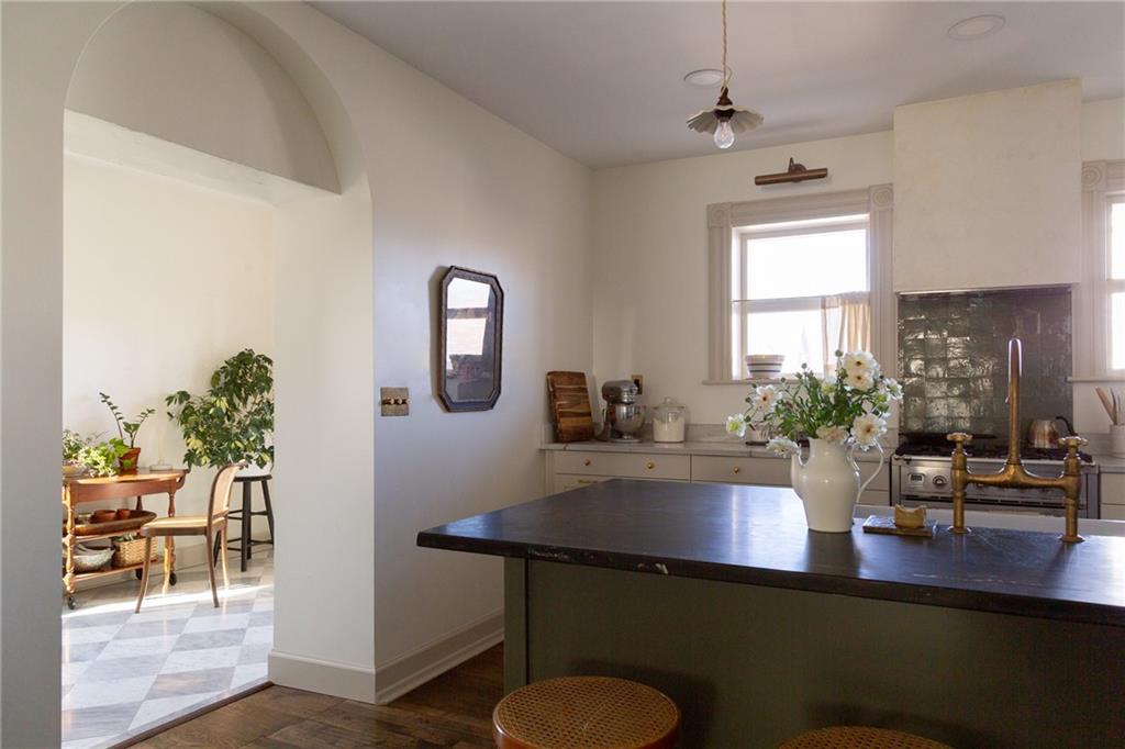 Buttery hardwood floors, tall ceilings, and natural light give this updated Victorian its unmistakable character. An elevated, custom renovation brings clarity and refinement to the original architecture, pairing sculptural millwork, reclaimed elements, and exposed brick with carefully chosen details throughout. Living and dining spaces connect fluidly, comfortable for everyday life yet generous when entertaining. The kitchen reflects the same level of intention, with quartzite and soapstone countertops, well-appointed cabinetry, tailored brass hardware, walk in pantry storage, and a high-end appliance suite chosen for beauty and performance. Both full baths are equally well considered, featuring elevated fixtures, curated tile selection, and finely detailed hardware. An exquisite lighting collection adds warmth throughout, while custom Marvin windows frame leafy neighborhood views along historic Olive Street. Outdoor living is an extension of the home itself, including an inviting wrap around front porch and two spacious rear decks overlooking a rare double lot. A front entry garage and ample off-street parking provide everyday ease, while the full, unfinished basement offers expansive storage capacity. Recent updates to major systems and the roof add confidence, with a long-term tax freeze providing welcome financial ease. This polished home is located in downtown’s Upper East Side neighborhood of Pendleton Heights, a historic district known for its character, walkability, and strong sense of community.