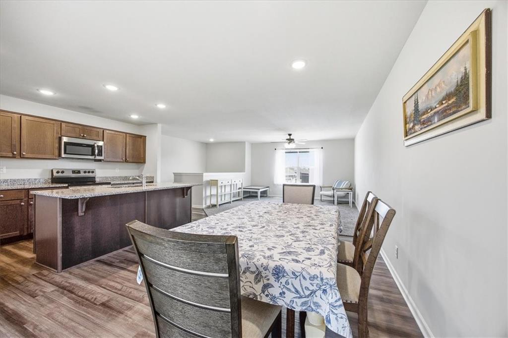 Stunning split-entry home with a bright, open-concept on the main level. The kitchen is loaded with cabinets and a generous island that flows seamlessly into the living room and dining area — ideal for everyday living and entertaining. This home offers 3 bedrooms and 2.5 bathrooms, Main-floor laundry adds convenience, and the oversized master bedroom is a private retreat. Finished basement with a handy half bath for extra living space. Step outside to a back deck perfect for relaxing or entertaining, There's plenty of storage in the 2 car garage.