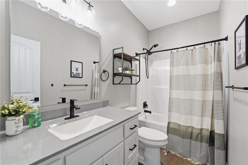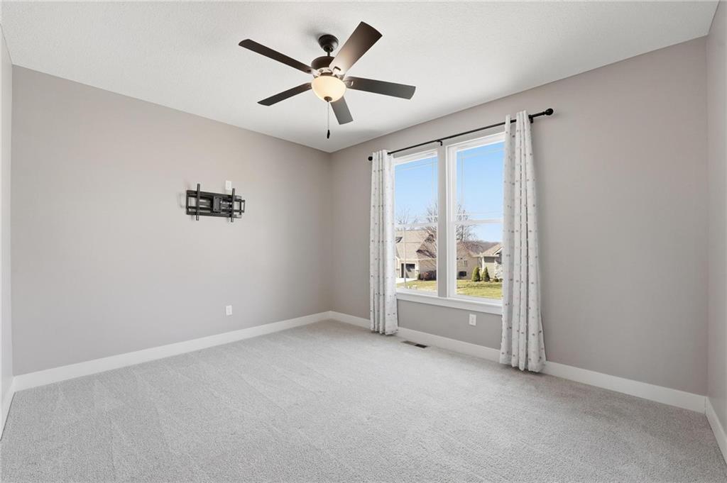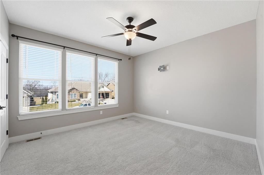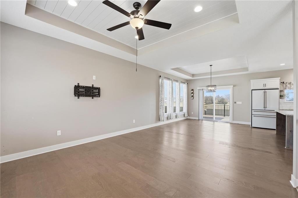 This stunning home welcomes you with an inviting open concept layout featuring beautiful hardwood floors that flow seamlessly through the kitchen, dining, and living areas. The kitchen is a standout with brand new $10,000 Café appliances, including a refrigerator, stove, microwave, and dishwasher, along with quartz countertops, a spacious center island with bar seating, tons of cabinetry, and a generously sized walk-in pantry. The washer and dryer are also included for added convenience, making this home completely move in ready. Natural light and tall ceilings create a bright and welcoming feel throughout. Just off the dining area, you’ll find a covered deck that’s perfect for relaxing or entertaining. The primary suite offers comfortable space along with a walk-in closet, double vanities, and a walk-in shower. Downstairs, the finished lower level provides a large rec room and a full bathroom, offering plenty of additional living space. Fenced in yard. HUGE three car garage with tons of additional storage space. This home has so much to offer, you won’t want to miss it!