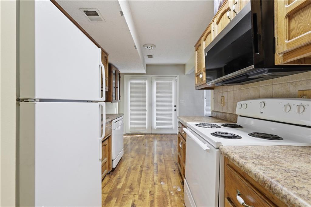 Great opportunity for investment or first time home buyer. Bones are good, but does need some cosmetic updates. The home features a bright and airy layout with neutral tones throughout, ready for your personal touch. A cozy gas fireplace is the focal point for the home's living room. In the kitchen, all appliances stay and the deck is accessed through the glass door in the eat-in kitchen. Both bedrooms are generously sized with plush carpeting, ceiling fans for year-round comfort, and ample closet space—including a convenient walk-in closet in the primary suite and mirrored sliding doors in the second bedroom. Enjoy a full bathroom upstairs featuring a large vanity and a practical tub/shower combo, plus a convenient half-bath on the main level for guests. No more trips to the laundromat! This unit includes a dedicated laundry closet on bedroom level, equipped with a washer and dryer set and overhead shelving for extra storage. Whether you’re a first-time homebuyer or looking to add to your investment portfolio, this townhouse is not to be missed. Schedule your showing TODAY.