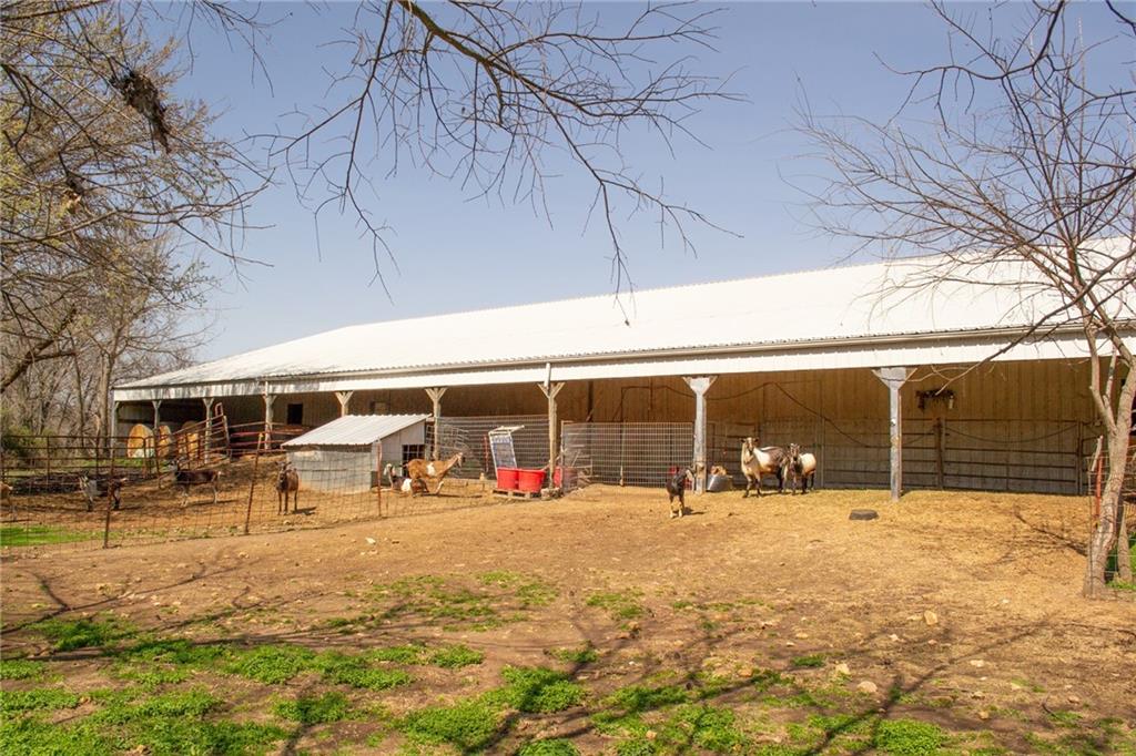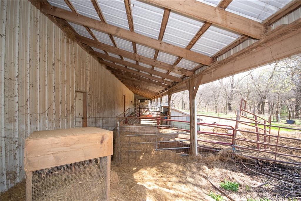 This rural home offers lots of promise to investors and do-it-yourselfers looking for a great opportunity to quickly build equity in a country estate. Just a few miles from Stockton Lake, this Spanish style home and acreage has a lot to offer. Stately oaks adorn the yard, offering plenty of shade and a striking presence. Numerous flower beds erupt in color and four archways welcome you onto the front porch, inviting a swing or some outdoor chairs for relaxation. Indoors, you'll love the spacious living room, where the country aesthetic is enhanced by the rough sawn beam ceiling. A wood stove promises toasty warmth on the coldest of winter days. The kitchen is spacious, but needs subfloor repair and new flooring. It features an island and plenty of cabinet space and is ready for your own custom touch. All four bedrooms and both bathrooms are located on the main floor, as is the laundry. The unfinished basement offers additional storage, a workbench, and shelter, and has a door to the back yard. Structurally, the house seems sound. Most of the work needed is cosmetic, including sheetrock, floor repairs, HVAC duct repairs, and painting. Horse lovers are especially sure to find the property to their liking. The crown jewel for the equestrian owner is the 60'x120' enclosed riding arena, complete with a sand floor, lighting and water. Another 30'x70' livestock barn affords more space for your livestock or pets, as as does a smaller loafing shed. If you're not into horses, the riding arena could be converted to boat and RV storage. With thousands of visitors to Stockton Lake each year, it's a sure bet that many of those visitors would prefer to store their boats and campers. With this property's location just minutes from the lake and on a paved highway, high demand for enclosed storage seems likely.