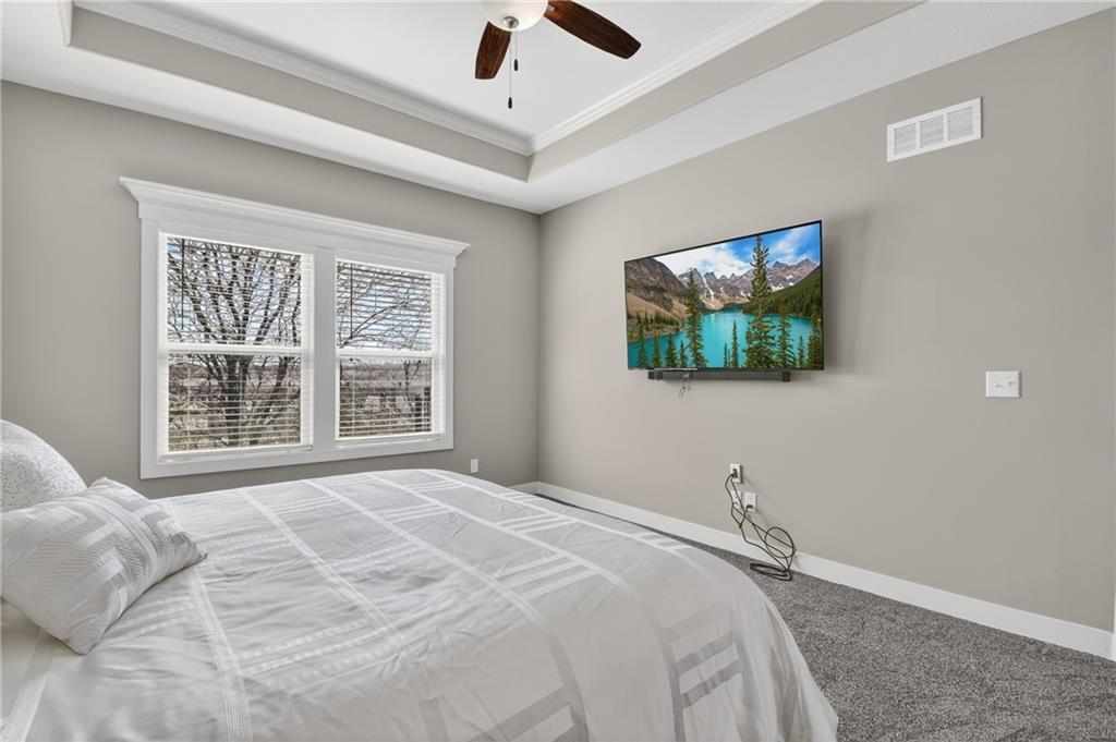 TRUE RANCH VILLA | CHAPEL RIDGE WOODS AT LAKEWOOD | MAINTENANCE-PROVIDED Discover refined main-level living in this 2019 built true ranch villa, perfectly situated in the Chapel Ridge Woods section of the master-planned Lakewood community. This "lock-and-leave" residence offers complete convenience with an HOA that manages lawn care, snow removal, and trash.The open-concept interior features an expansive great room anchored by a gas fireplace, flowing seamlessly into the kitchen and dining areas. The gourmet kitchen is a focal point, boasting an oversized granite island, custom painted cabinetry, and a walk-in pantry. Retreat to the primary suite, which includes a spacious walk-in closet, double vanity, and a modern walk-in shower.Property Highlights:Superior Build: Concrete & tiled maintenance free roof, stucco and stone-trim exterior, & high-efficiency insulation (R-49 ceilings R-19 walls). Main Level Living: Includes two bedrooms, two full baths, and a dedicated laundry room all on one floor. Equity Potential: The full daylight basement is already insulated and stubbed for a bath ready for your custom finish to add immediate square footage & value. Outdoor Space: Enjoy a large private deck overlooking the treed lot. Inground sprinkler system. World-Class Amenities: Full access to Lakewood’s 365-acre private lake, clubhouse, swimming pools, tennis courts, and walking trails.Experience the quality of a newer build with the established luxury of one of Lee's Summit's premier maintenance-provided neighborhoods.