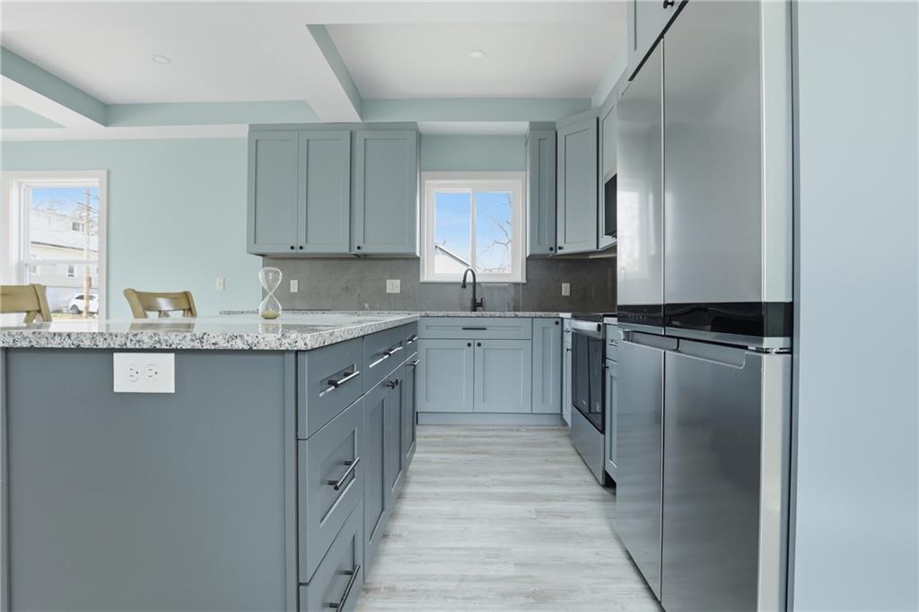 Welcome to 1240 Riverview Ave a fully reimagined 4-bedroom, 3-bathroom home offering 3,536 sq ft of beautifully renovated living space in Kansas City, KS, listed at $285,000. This home has been completely rebuilt from the ground up with quality finishes throughout. The striking exterior features a modern gable design with warm wood accents, a welcoming covered front porch with stylish black railings, and a 2-car attached garage. Step inside to an open-concept main level with premium flooring, coffered ceilings, and abundant natural light flowing through generous windows. The chef's kitchen boasts custom cabinetry, elegant countertops, a stunning tile backsplash, stainless steel appliances, a center island with bar seating, and quality fixtures. Spa-like bathrooms feature beautiful floor-to-ceiling tile work, soaking tub and shower combinations, custom vanities, and refined finishes. A stunning hardwood staircase connects to the upper level bedrooms. Every detail has been thoughtfully executed this is truly move-in ready.