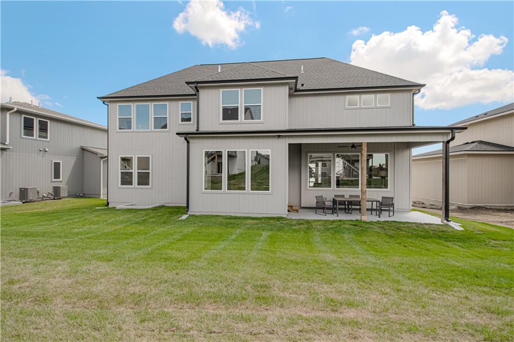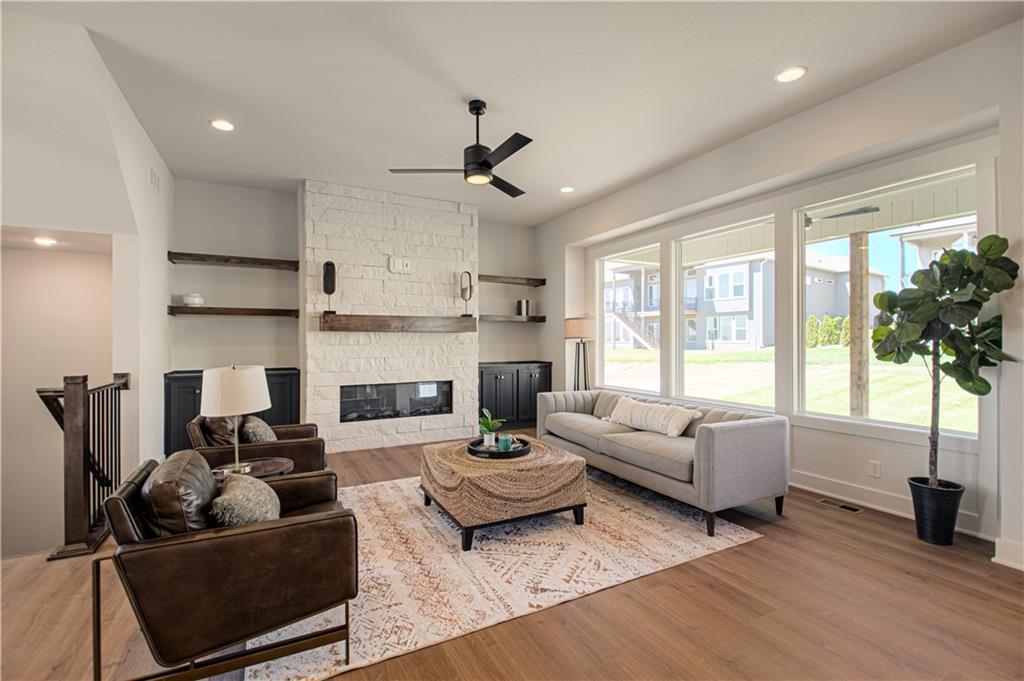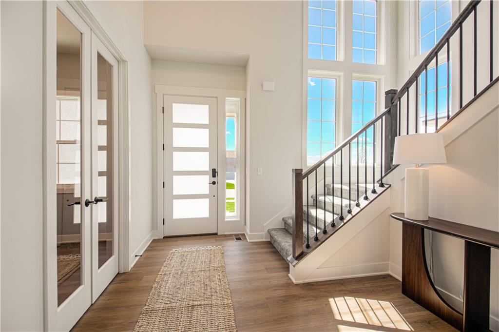 Step into the Inspired Homes 2-story Delano and experience a design that immediately stands out. A dramatic grand entry with 18-foot ceilings welcomes you in and flows seamlessly into the open-concept great room and kitchen. The main living area offers plenty of space to relax and entertain, featuring a striking floor-to-ceiling fireplace with built-in cabinetry, a generous dining area surrounded by wall-to-wall windows, and a thoughtfully designed kitchen. You’ll love the oversized walk-in pantry, upgraded quartz countertops, stylish tile backsplash, soft-close custom cabinetry, and modern lighting throughout. On the main level, a private bedroom and full bath provide the perfect setup for guests, a home office, or a playroom. Near the front entry, a convenient pocket office with a window brings in natural light—ideal for working from home. Upstairs, you’ll find three spacious secondary bedrooms, each with walk-in closets and built-ins, including one with its own private bath. The primary suite is tucked away at the back of the hall and features a luxurious en-suite bath with a soaking tub, dual vanities, and a large dual-head shower. The adjoining walk-in closet is truly exceptional, with two separate wings and a hidden bonus room—perfect for a private office, workout space, or creative retreat. Outside, enjoy a large, flat backyard and an oversized covered patio—perfect for entertaining or relaxing. The expanded 3-car garage offers extra depth and is complemented by a spacious driveway. The full unfinished basement includes plumbing stubs for a future bathroom and wet bar, for endless possibilities to customize the space. Located in the desirable Pryor Ridge community, residents enjoy exceptional amenities including a junior competition-sized pool, playground, basketball and pickleball courts, off-leash dog park, open green spaces, and scenic walking trails. All of this is just minutes from shopping, dining, groceries, entertainment, and easy highway access.
