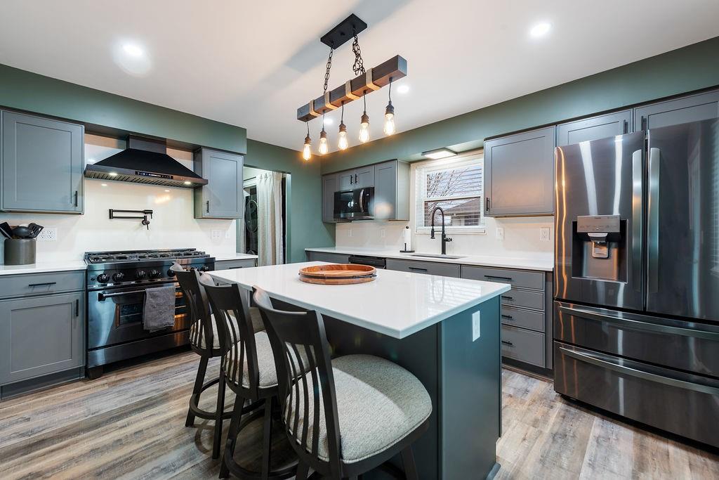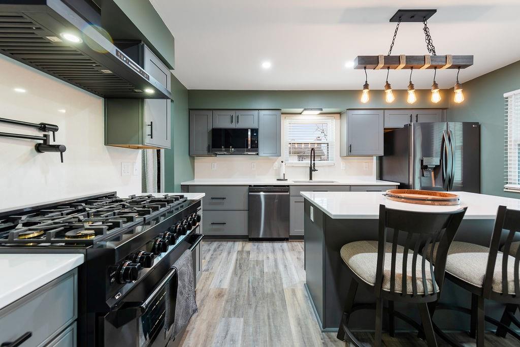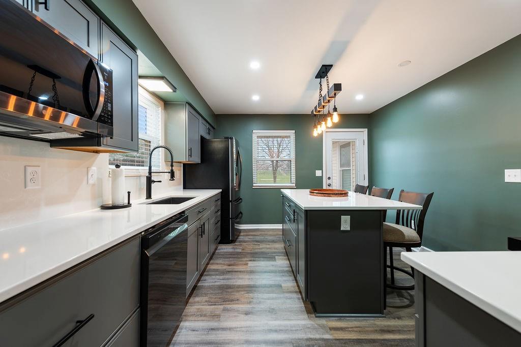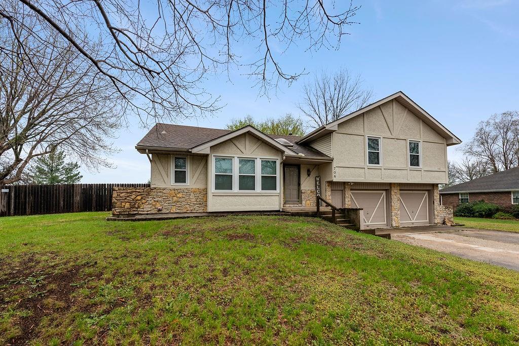Welcome to 706 Ozark Short Line where style meets function in all the right ways. This side split floor plan offers the perfect blend of openness and separation, with living spaces designed to feel connected while bedrooms stay tucked away for privacy. Modern updates are carried throughout the home, giving it a fresh, elevated feel from top to bottom. Step inside to a showstopper living room featuring a floor to ceiling stone fireplace and cathedral ceiling with a statement beam that instantly draws your eye. The kitchen has been completely reimagined with high end finishes throughout including quartz countertops, black stainless appliances, a ZLINE 6 burner gas range with a vented hood, and designer color selections that give the space a bold, elevated feel. A dedicated dining space sits just off the kitchen, perfect for everyday living or hosting. The finished basement adds extra flexibility with a non-conforming room ideal for a home office, gym, or guest space. Outside is where this one really shines. Sitting on a .38 acre lot, the fully fenced backyard features a pool that is essentially like new with updated stairs, liner, pump, sand filter, and skimmer box already done. There is also a shed for additional storage, giving you both space and function. If you’ve been looking for something move in ready with standout updates and a backyard built for summer, this is it. Contact me today to schedule your showing.
