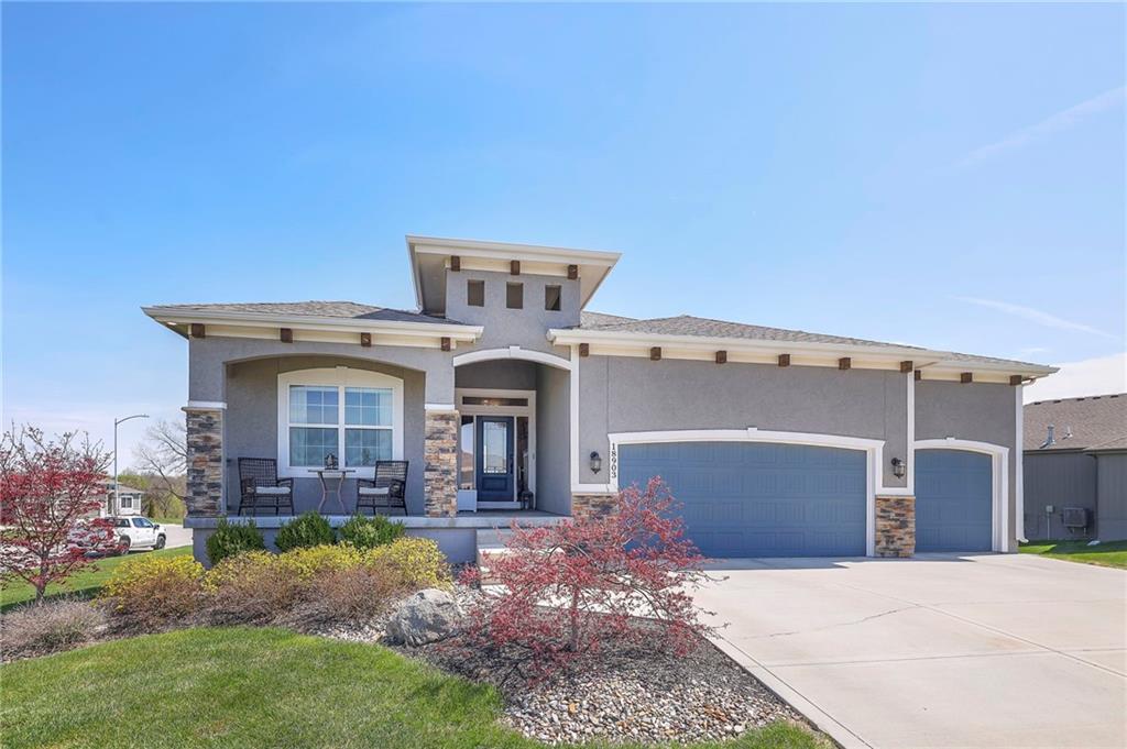 Welcome to effortless, care-free living in this beautifully designed, move-in ready home perfectly situated on a premium corner lot. From the moment you step inside, you'll appreciate the modern open layout, enhanced by engineered hardwood floors and wainscoting entry, upgraded finishes and fresh interior paint. The designer kitchen is truly the heart of the home, featuring custom cabinetry, a large center island, walk-in pantry, gas range and Frigidaire stainless steel appliances-all included. A charming coffee bar adds both function and style, making mornings something to look forward to. The spacious primary suite offers a relaxing retreat with a tray ceiling and large windows that fill the room with natural light, along with a custom tiled shower for a spa-like experience. Additional thoughtful touches include a stylish barn door, ceiling fans, faux wood blinds, upgraded front door, and a wrought iron fence. Cozy up by the gas fireplace with floor to ceiling stacked stone or step outside to enjoy the extra large covered composite covered 13' x 13' deck-perfect for entertaining or unwinding. The finished lower level, daylight basement, provides additional living space, an additional bedroom and full bath with plenty of unfinished storage space to do with what you would like, while the garage offers even extra storage for convenience. This home also includes an active radon mitigation system and a kitchen sink water filtration system for added peace of mind. Enjoy maintenance provided living with lawn care and snow removal for a mandatory $150/month. Community amenities are second to none, featuring a clubhouse, pool, playground, party room, and scenic walking trails. This home truly has it all-style, comfort, and convenience-ready for you to move right in and enjoy!! Why pay for new construction when you can everything you want right here. It's just waiting for you!