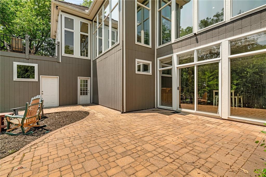 Welcome home to this stunning Don Julian reverse 1.5-story tucked on a wooded half-acre at the end of a quiet cul-de-sac in Woodland Reserve. Soaring ceilings and oversized windows frame peaceful, tree-filled views and fill every room with natural light. The main level offers formal dining, a living room with see-through fireplace, hearth room, home office, and a well-appointed kitchen with custom cabinetry, quartz counters, stainless appliances, double ovens, and walk-in pantry. A four-season sunroom opens to the deck. The primary suite features a tray ceiling, built-ins, and a two-way fireplace into a luxurious en suite bath with heated tile floors, dual vanities, soaking tub, oversized shower, and walk-in closet. A second main floor bedroom with private bath, powder room, and laundry round out the main level. The finished walkout basement includes three additional bedrooms, two with private baths, a family room with fireplace and wet bar, media room, second powder room, and second laundry. The climate-controlled 4-car garage is a dream for hobbyists and car enthusiasts alike. A built-in shed adds even more storage. Enjoy the pool, pond, walking trails, play area, and beautifully maintained common spaces this community has to offer. Tranquil setting just minutes to Oak Park Mall, Lenexa City Center, Shawnee Mission Park, K-7 and I-435.Buyer/Buyer's Agent to verify square footage.