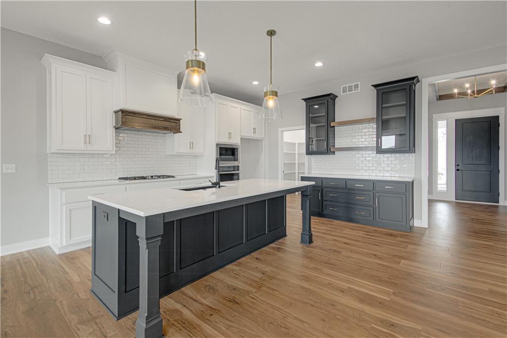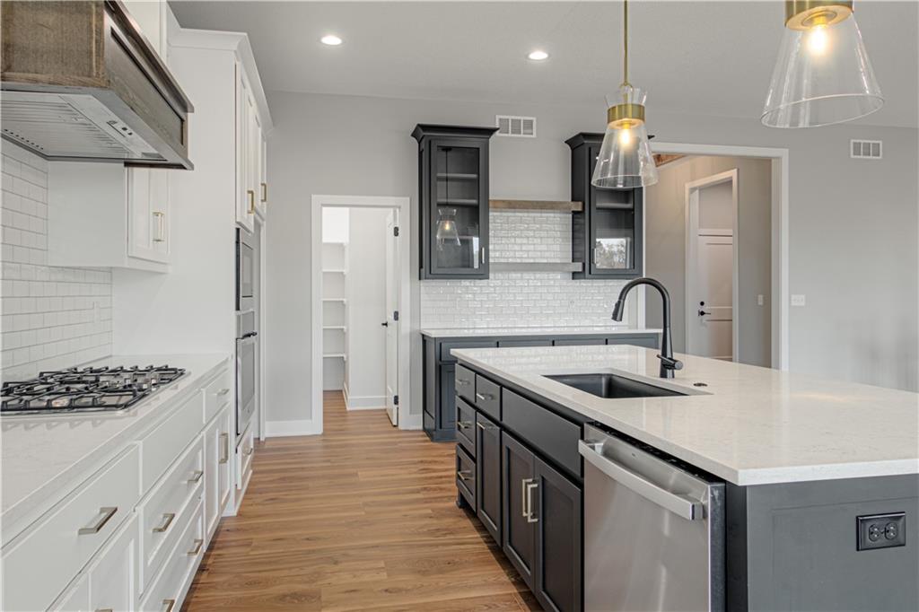 Nestled on a beautiful treed walkout lot, this thoughtfully designed home offers the perfect blend of privacy, comfort, and quality craftsmanship. Enjoy peaceful views from the oversized covered deck, an ideal space for relaxing outdoors or entertaining guests while surrounded by mature trees. Inside, the great room serves as the heart of the home, featuring a striking stone fireplace complemented by built-in cabinetry with floating shelves, creating a warm and inviting atmosphere. The open layout flows seamlessly into the kitchen, which showcases upgraded quartz countertops, an oversized island perfect for gathering, and a spacious walk-in pantry designed for both convenience and style. Throughout the home, you’ll find upgraded trim and decorative accent details, along with numerous tile and finish upgrades that highlight the quality and attention to detail in every space. The walkout lower level provides additional living and entertaining space, complete with a wall wet bar, making it the perfect area for hosting friends, movie nights, or game-day gatherings. Additional highlights include an oversized garage and countless upgraded finishes throughout!