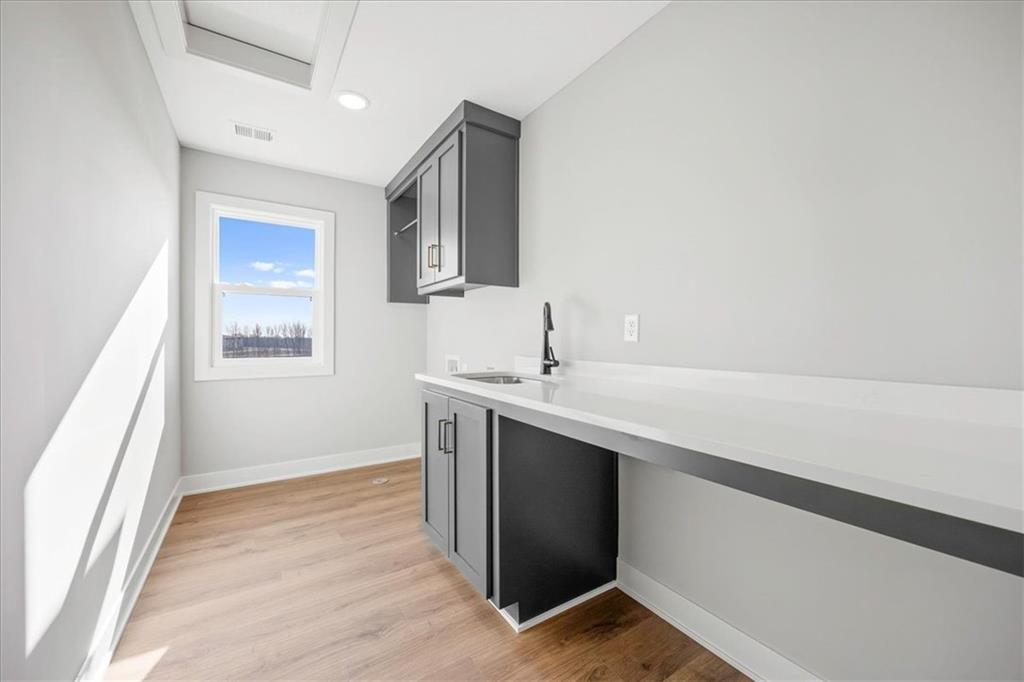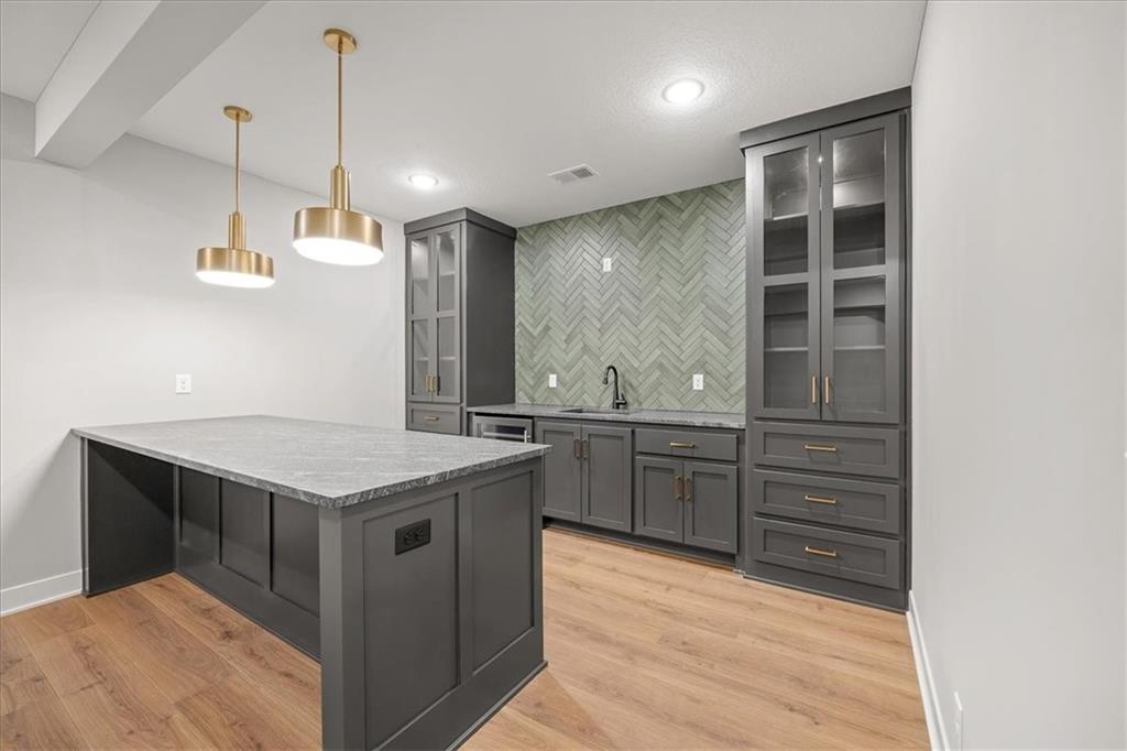 Situated on a level lot with a covered patio, this thoughtfully designed home offers comfort, style, and exceptional functionality. The inviting great room features a beautiful stone fireplace and built-in cabinetry, creating a warm focal point that flows seamlessly into the kitchen. Designed with both style and practicality in mind, the kitchen showcases upgraded quartz countertops, a custom coffee bar, and a large walk-in pantry, offering plenty of space for storage and gathering. Just off the garage, the owner’s entry includes custom lockers, helping keep everything organized and functional for daily life. The main level also offers a convenient pocket office, perfect for working from home or managing day-to-day tasks, along with a separate guest bedroom on the main floor for added flexibility. Throughout the home you’ll find upgraded trim, decorative accent details, and numerous tile and finish upgrades, highlighting the quality craftsmanship in every space. The lower level is unfinished but already stubbed for a future bathroom and wet bar, giving buyers the opportunity to expand the living space and customize it to fit their needs. Additional highlights include an oversized garage and extended driveway, providing extra room for vehicles and storage.