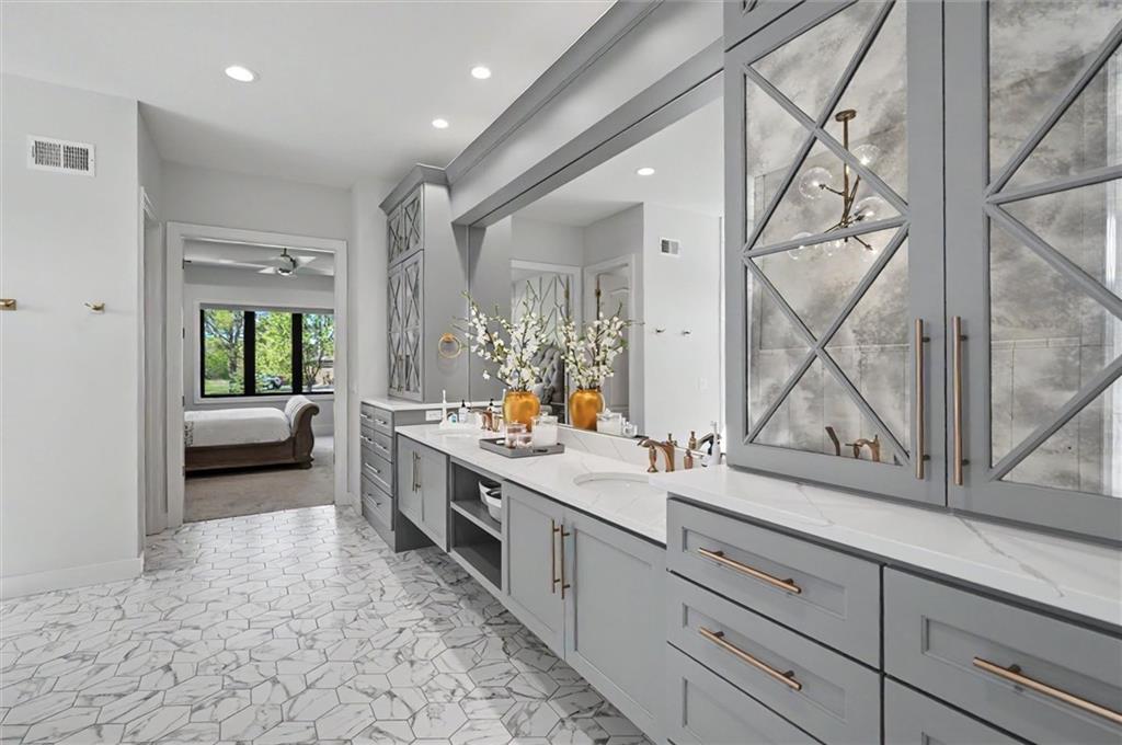 This beautiful Overland Park home boasts over 8,000 sq ft of finished living space with 6 bedrooms and 7 bathrooms in one of Kansas's premier school districts. The main level features a primary suite plus a second bedroom—ideal for guests and main-floor living. Upstairs you will find 3 bedrooms with full ensuite baths, a large laundry and 2 dedicated office spaces, offering flexible work-from-home or study options. Walkout lower level is filled with natural light and includes an additional bedroom, bathroom, theatre room, gym, and large rec space. The backyard is built for entertaining with a gunite pool directly off the patio, built-in outdoor kitchen, and fire pit. Ubiquiti wifi extenders around the house, high end multimedia system in theatre all stay with the home. This one is too good to pass up!