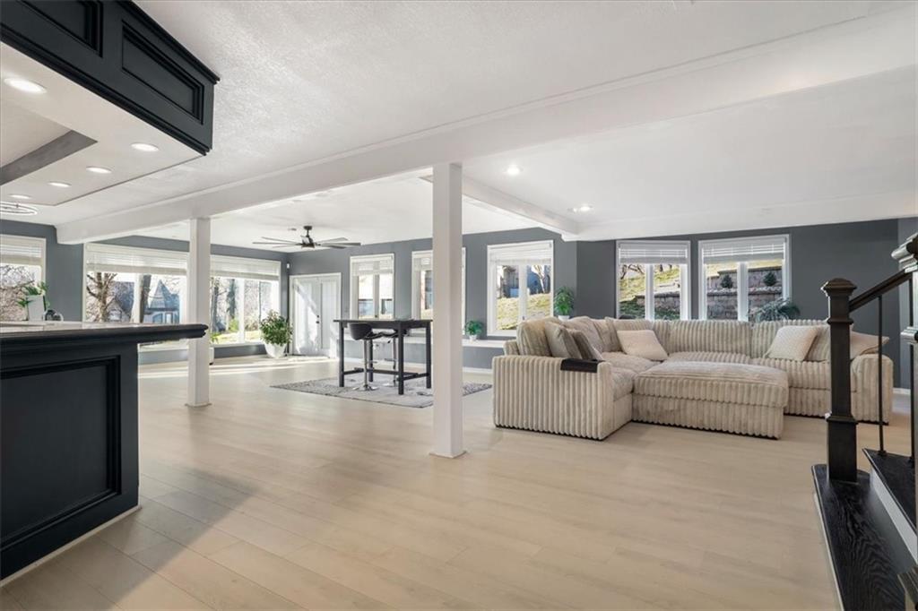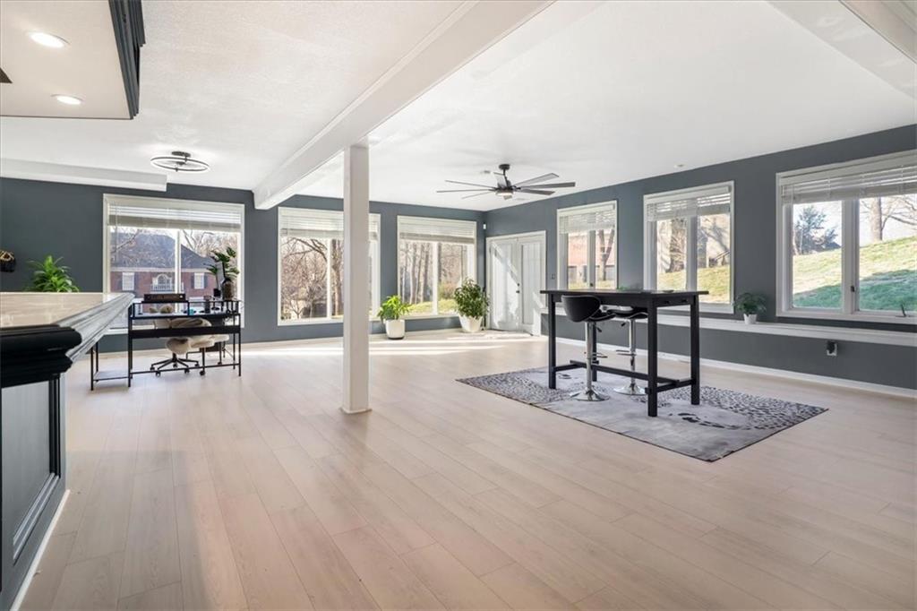 Beautiful 1.5 Story Home with Over 6,000 Sq Ft! Spacious, functional layout with high ceilings. Main level features a large living room, formal dining, office, and an updated eat in kitchen/hearth room with solid surface counters, new lighting, pantry & Laundry Room. Primary suite offers a walk in closet and generous bath. Upstairs include three bedrooms, each with a private bath and ample closets. Finished walk out basement provides a huge family/rec space, full bar, full bath, workout room, craft room, Bonus room hidden by Murphy Door and suspended garage/work shop with tons of storage. The home has many built-ins included in the dining room, office and downstairs living area. The home features many recent updates including, new roof, all new LVP flooring, all poly water lines replaced with PEX/copper, updated shower valves, new fixture stops, fresh interior paint, and new sheetrock in several areas, New door in kitchen/dining room, new laundry room upstairs. Located on one of the largest lots in the subdivision with a circle drive and cul-de-sac! Super convenient to shopping, dining, highways, and in the Park Hill School District.