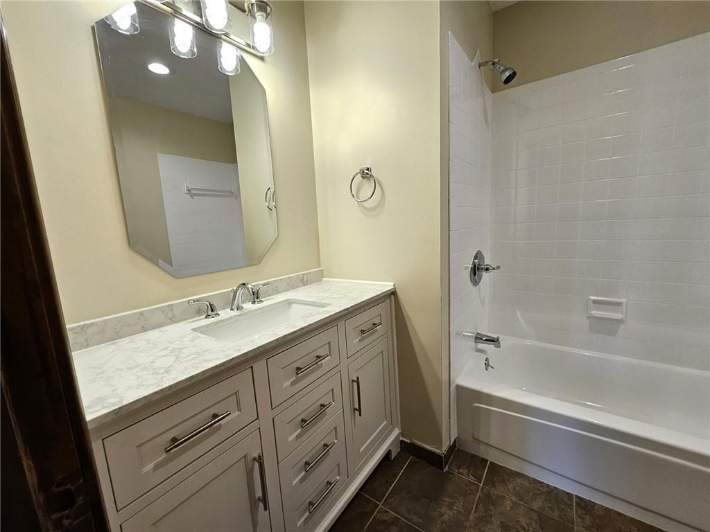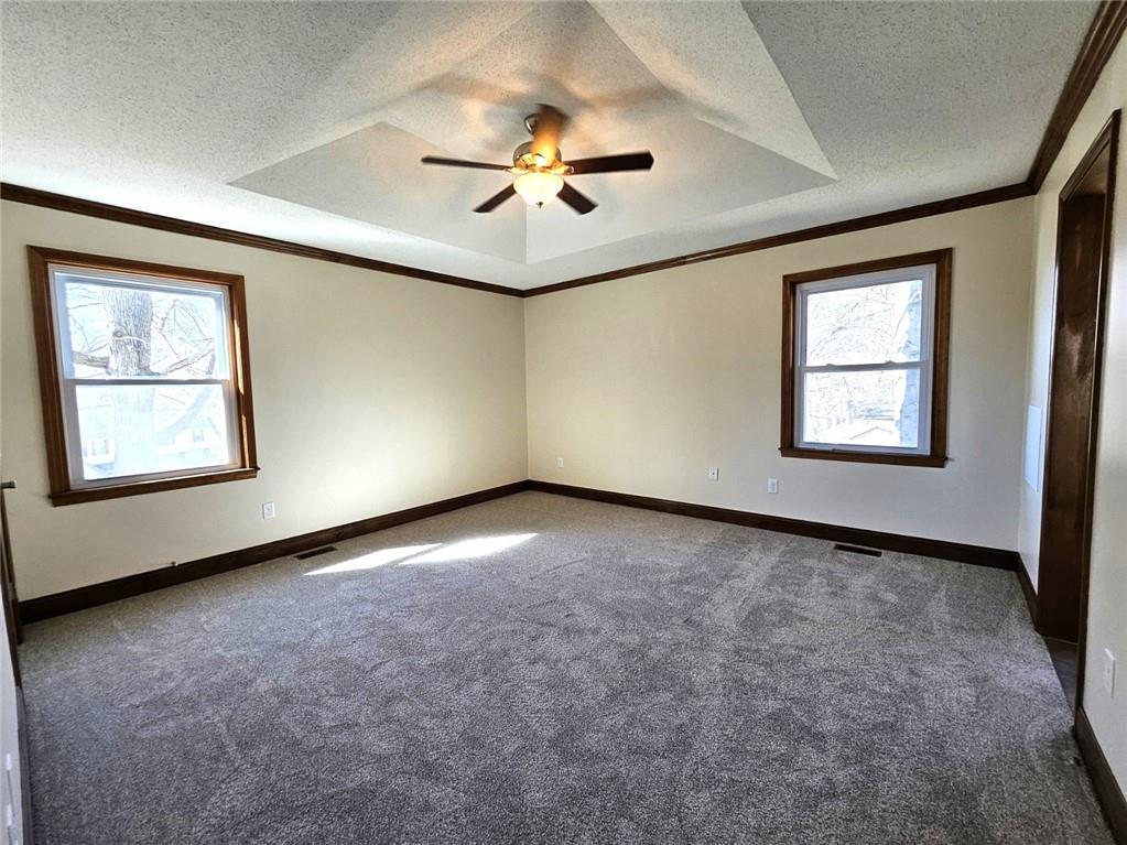 Welcome home to this spacious and beautifully updated front-to-back split floor plan! Featuring fresh interior paint and brand-new carpet throughout, this home is truly move-in ready. The inviting living room boasts a vaulted ceiling and a stunning floor-to-ceiling brick fireplace, creating a warm and open gathering space. The oversized kitchen is a standout, complete with newer stainless steel appliances, solid surface countertops, abundant cabinetry, and a large pantry—plus plenty of room for a full-sized dining table. Step out to the gated deck overlooking a fenced yard, perfect for entertaining or relaxing. The primary suite offers two closets, including a walk-in, along with a well-appointed en-suite bath featuring a double vanity, garden tub, and a brand-new separate shower. The hall bathroom has also been tastefully updated. Bedrooms two and three include ceiling fans for added comfort. Downstairs, enjoy a finished family room with durable tile flooring and a convenient half bath. The large sub-basement provides excellent storage or the opportunity for future finishing. A huge garage offers ample space for vehicles, tools, and a workshop area.