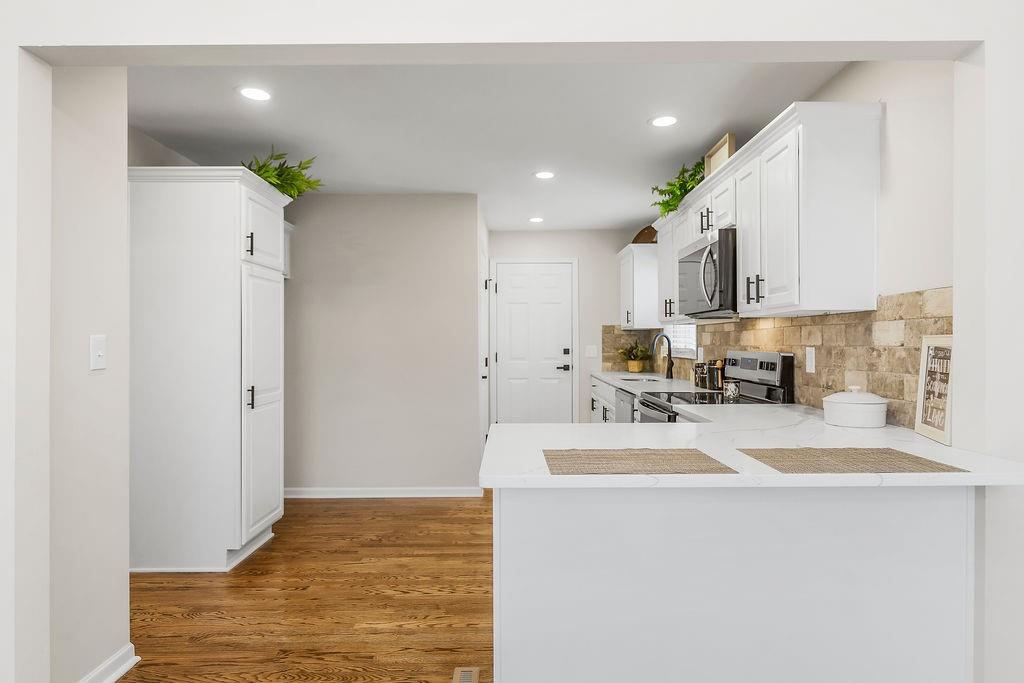 Beautiful remodeled ranch in White Ridge Farms features hardwood floors throughout the main level. Kitchen features quartz countertops, and Stainless Steel Appliances, and a pantry. All new modern light fixtures and bathrooms have been remodeled. Main floor laundry room and a bonus room that could be an office or formal dining room. Downstairs has a family room and a full bath. Plenty of room left for a home gym or storage. Nice patio area out back for summer BBQs!