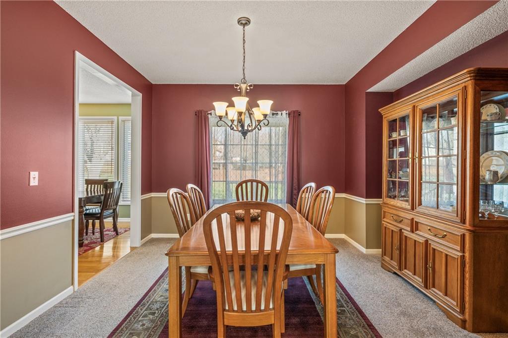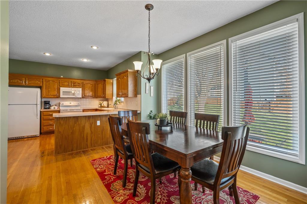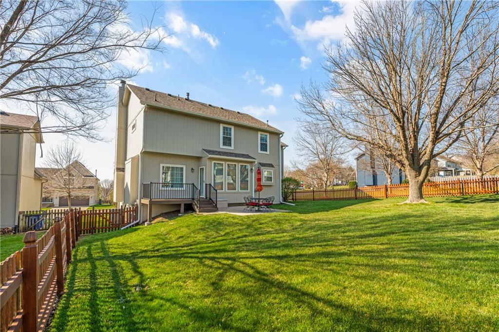 Welcome to one of the most desirable homes in Hillcrest Farm, situated on one of the neighborhood’s largest lots. This beautifully maintained property offers a perfect balance of space, comfort, and thoughtful updates in the highly sought-after community of Shawnee. Inside, abundant natural light fills the home. The living room features a graceful bay window and striking fireplace, while a formal dining room adds charm and elegance. The spacious kitchen provides ample cabinet and counter space, with a breakfast area that flows to the backyard for effortless indoor-outdoor living. Upstairs, the expansive primary suite is a relaxing retreat with tray ceilings, a large bay window, and a private ensuite with double vanities, separate shower, and jetted tub. Additional bedrooms offer flexibility, and a second full bath includes double vanities and a shower/tub combination. The finished lower level adds a large rec room—perfect for a media area, playroom, or home office. The basement includes a cedar closet for storage and shelving in the unfinished area, with additional storage in the attic above the garage. Outside, enjoy a large fenced backyard with mature trees, blooming flower beds, colorful burning bushes, and a charming crabapple tree, all easily maintained with the in-ground sprinkler system. Recent updates include a new roof, gutters, windows, siding, and premium exterior paint. Additional improvements include added electrical/breaker capacity in the garage, new fire and carbon monoxide detectors, and new appliances. Pet-free and lovingly maintained, this home offers comfort, convenience, and lasting value. Located in a friendly, well-established community with great schools, nearby parks, walking trails, and easy access to shopping, dining, and recreation, this home truly offers the best of comfort, convenience, and everyday living.
