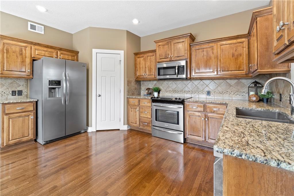 Super clean and ready for a quick occupancy, this coveted Tom French Lexington plan is a south side end unit w/ first floor primary suite & laundry room*sunny living room w stone fireplace opens to kitchen w/breakfast area, granite counters, wood floors & walk-in pantry*kitchen offers direct access to screened porch which backs east and makes for perfect sunshine mornings and shaded afternoons* LL w 2 bedrooms, full bath, media/bonus room and plenty of storage. All baths & laundry w tile floors. Showers have tile surrounds. Room sizes, sq. footage, HOA fees and taxes may be approximate, please verify.