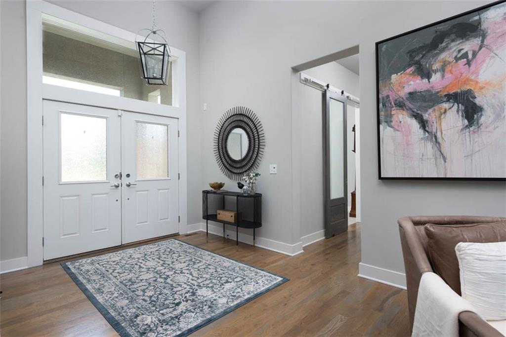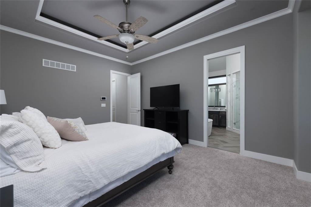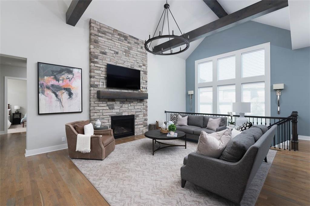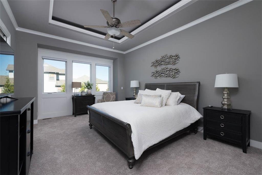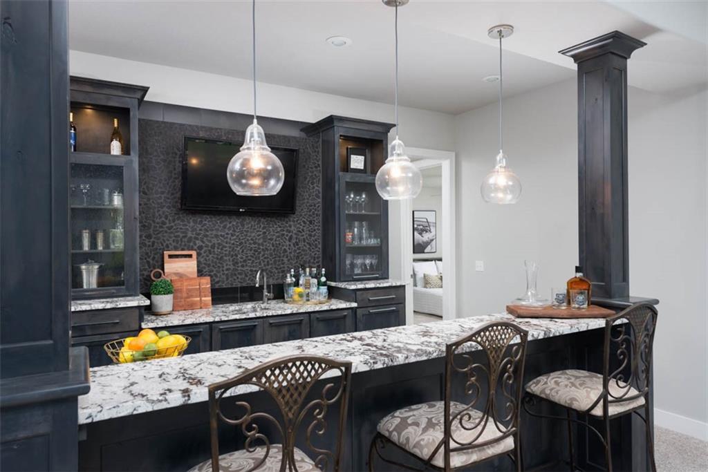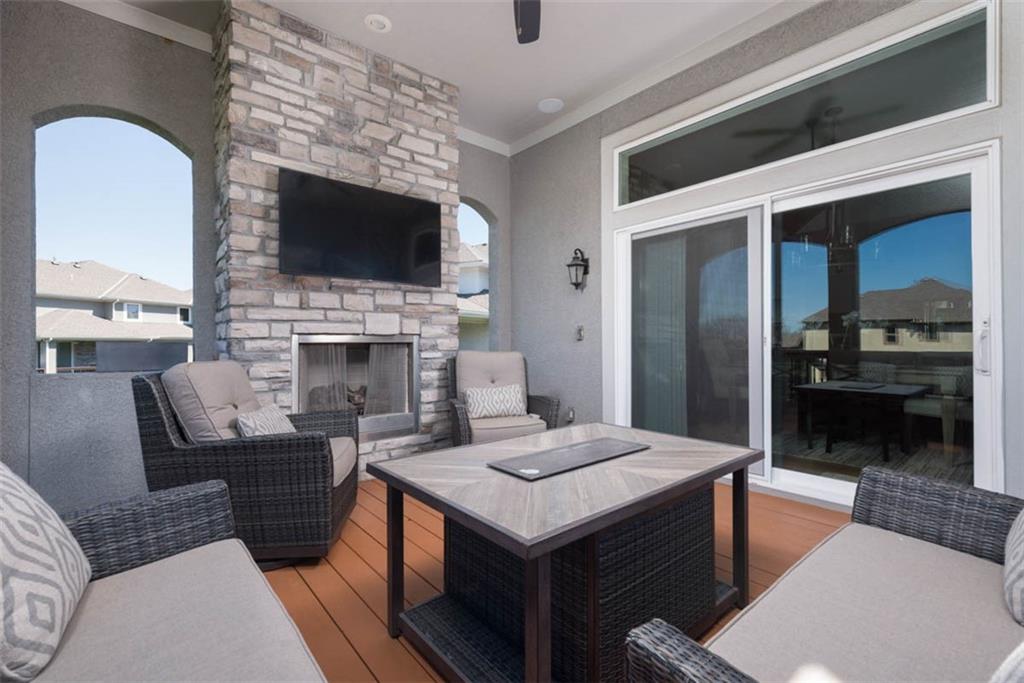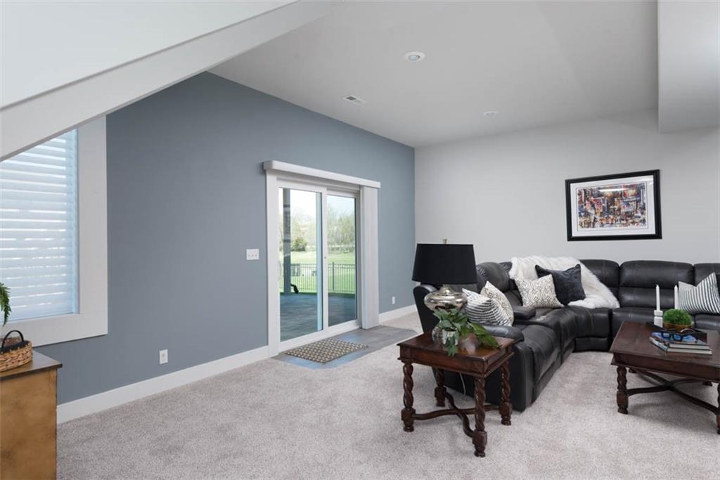 Positioned on a walkout corner lot in the sought-after Colton community, this custom Brookridge II by Don Julian Homes offers a refined take on reverse 1.5-story living with impeccable upgrades throughout. From the moment you step inside, soaring ceilings and expansive 3-floor window wall create a sense of openness, while rich architectural details bring warmth and character to the main living spaces. At the center of the home, the kitchen is both breathtaking and functional, anchored by an oversized island, abundant custom cabinetry, stunning backsplash and countertops, and a walk-in pantry designed for effortless organization. The adjoining dining area flows seamlessly to the covered deck, where a fireplace and elevated views create an inviting extension of the home, ideal for both quiet evenings and hosting with ease. The main-level primary suite is designed as a true retreat, featuring a spa-like bath with an oversized shower and rain head, dual vanities, and a generous walk-in closet that connects directly to the laundry room for added convenience. A secondary bedroom AND dedicated office or flex space complete the main floor, offering versatility without sacrificing comfort. The walkout lower level is equally impressive, with 10-foot ceilings that enhance the sense of space. A large recreation area, media space, and full bar create an ideal setting for entertaining, while additional bedrooms and baths provide privacy for guests. Outdoors, the experience continues with a spacious patio, firepit area, built-in grill, and a wide stretch of green space that feels both open and private, an ideal backdrop for everyday living and memorable gatherings. Garage features epoxy floors and custom cabinets! Every element of this home has been carefully curated to offer a balance of elevated design and effortless livability. A fantastic neighborhood just minutes away from dining, shopping, schools, highways, and entertainment, this stunning custom home has it all!