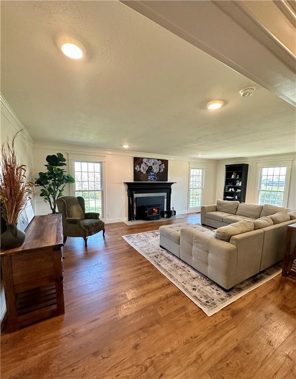 On a quiet cul-de-sac just outside city limits sits this serene country estate on 5.19 acres, offering the perfect blend of privacy and convenience—with no HOA. This beautifully updated home features 3 bedrooms and 2.5 baths, with a thoughtfully designed layout that includes a main floor primary suite for added comfort and accessibility. Floor-to-ceiling renovations provide peace of mind and elegant design, including a gorgeous kitchen featuring quartzite countertops, stained/painted white oak soft-close custom cabinets, Bosch and GE Café appliances (double oven gas range), a farmhouse sink, Zellige tile backsplash, and a large island. The newly added mudroom/laundry and walk-in pantry provide ample storage. Recent updates also include new paint, new windows, a brand new high-efficiency furnace, new laminate wood flooring, luxury vinyl tile, carpet, and complete bathroom renovations. Enjoy the warmth and ambience of the new high-efficiency catalytic converter wood-burning fireplace in the main living room. The unfinished walkout basement (with high ceilings and rough-in plumbing) offers even more potential and includes a backup wood-burning furnace. The charming sunroom provides an extension of the home’s living space, bathed in sunlight with surrounding windows and a glass door. The property also boasts a spacious 28’x40’ outbuilding with double garage doors and a full loft—ideal for storage, hobbies, or a workshop. Relax in quiet nature with rolling hills that include a natural intermittent stream and pond and abundant mature trees that provide shade and privacy. Enjoy the song of the frog at the start of spring, flowers in constant bloom through spring and early summer, and gentle evenings with the glow of lightning bugs during late summer. The 6-ft fenced 16’x20’ garden is perfect for growing flowers and produce. Located within the highly desired Kearney School District, this property combines rural charm with modern updates and endless dreaming.