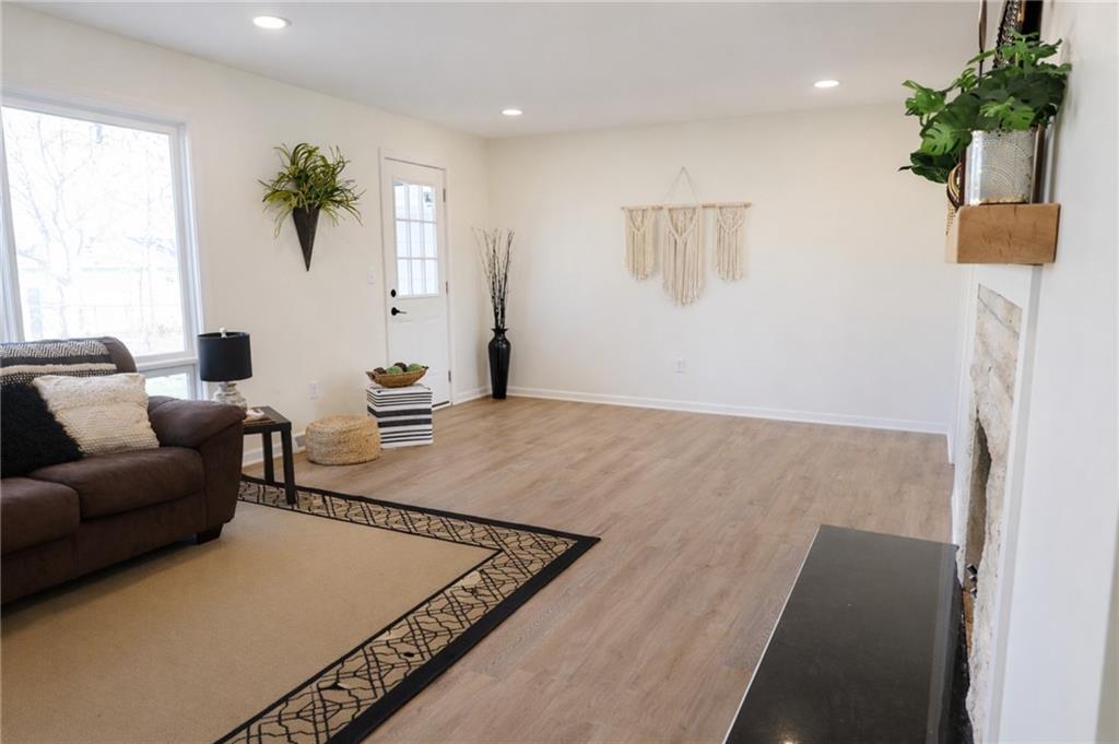 Living room featuring light wood-style floors and recessed lighting