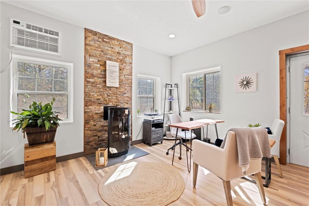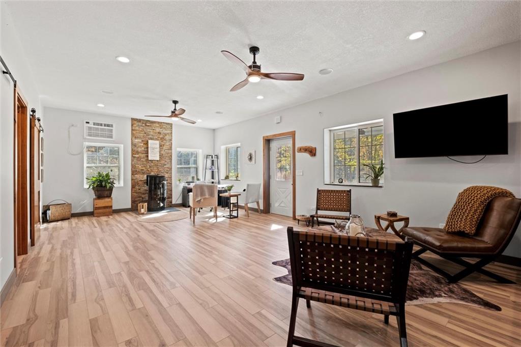 The most desirable acreage in the Kansas City Metro -a true dreamland! The stunning 38-acre property offers a state of-the-art BARNDOMINIUM, a great combination of level and wooded areas, a hilltop with 360-degree views, and over 2,000 feet of Kill Creek frontage. The scenic driveway leads to an expansive secluded area, where the Barn is strategically positioned. Built by Morton, a leader in quality barns, it includes high-efficiency features, and all essential utilities are in place. An ideal setup while you build your home or to expand finished area within the building. Engineered to withstand high winds, the 40' x 70' building has two 12-foot rolling doors and a third garage door. Endless possibilities as a private retreat, an event space, and entertaining. All interiors have heating and cooling for year-round comfort. You'll enjoy an open living space, a private room, kitchen, and 1.5 bathrooms, and a spacious 427 SF loft. Booming De Soto is on the brink of great developments, including the nearby Panasonic factory. Abundant natural beauty and convenience have long made it a sought-after destination, just 20 minutes from Lawrence, Kansas City, and Downtown Overland Park. Perfect for country living without sacrificing accessibility. The lot borders Johnson County's Park through Kill Creek, with plans to connect with Kill Creek Park to the South for endless nature and just 5 miles West of Cedar Creek, the*600 AMP service, septic with capacity for more connections, propane tank and sewer connection on property for additional needs.The $4 billion is projected to create significant economic growth in the area, driving demand for real estate developments, including residential, commercial, and infrastructure projects. It's an exceptional chance for developers to capitalize on the surge and greater returns. *Seller may consider dividing into 2 lots and has available architectural plans for a 10,000 SF residence (locations on last photo). DE SOTO SCHOOLS!