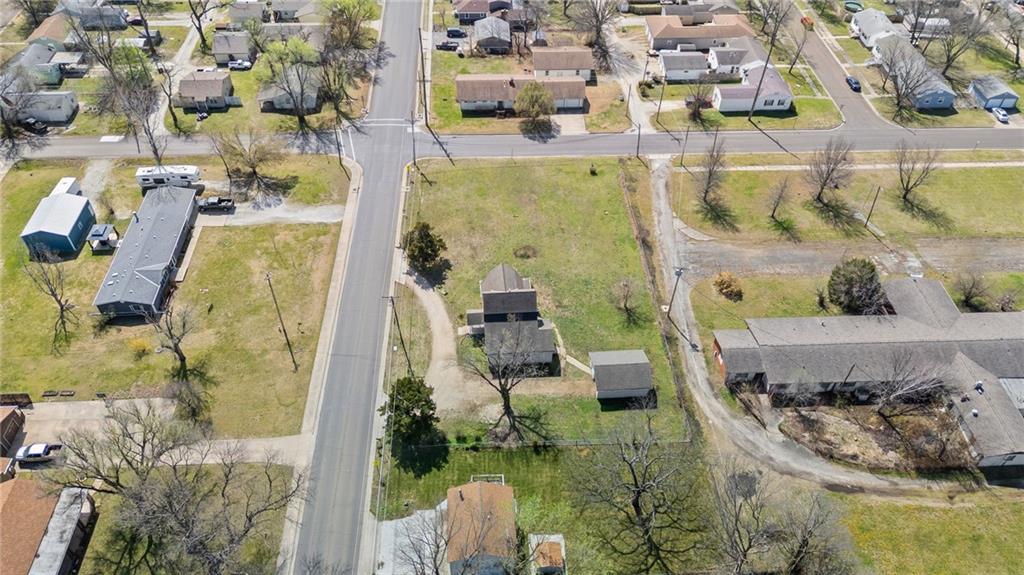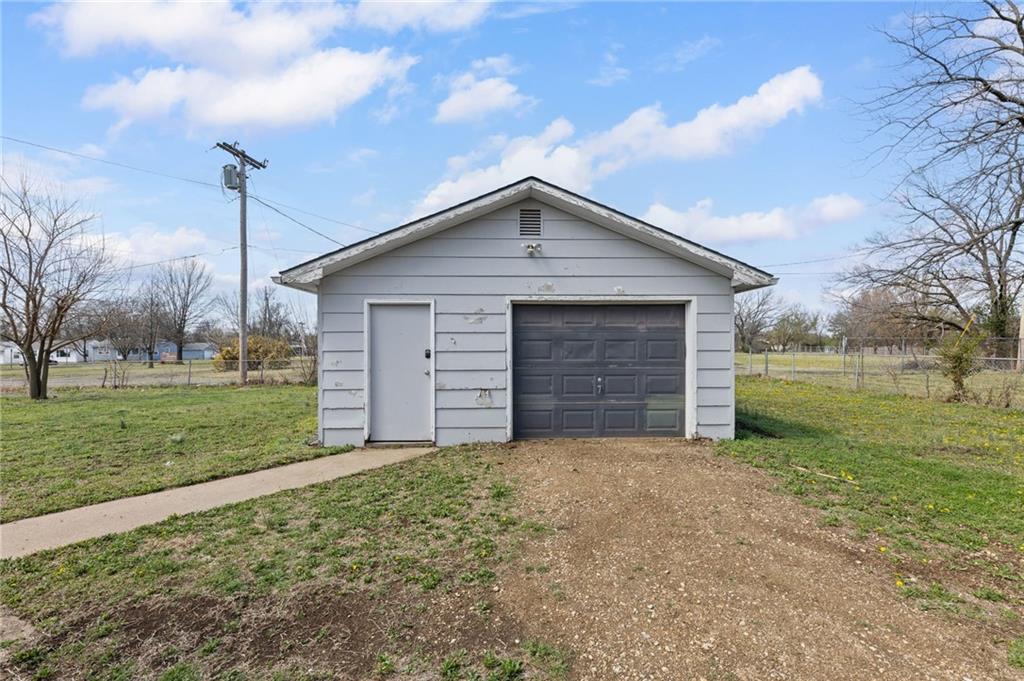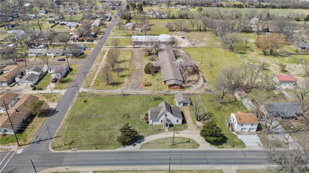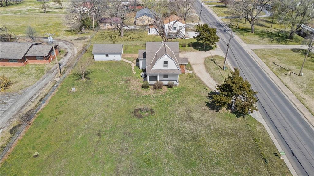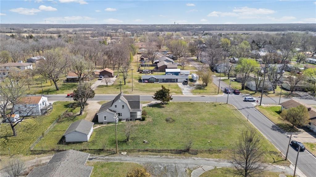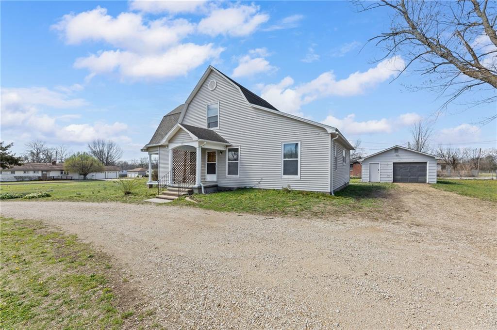 Incredible opportunity to own a piece of Iola history on a massive footprint! This well-maintained traditional bungalow sits on a giant corner lot spanning over 26,000 square feet, consisting of two individual lots. The home features a functional layout with a formal dining room and a convenient main-level utility room located just off the kitchen. The exterior is a true standout, offering a covered deck, a charming porch, and an oversized detached two-car garage perfect for hobbies or extra storage. Move-in ready with updated flooring and fresh carpet throughout, this home is eligible for multiple financing options including FHA, VA, and USDA loans
