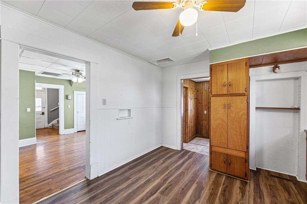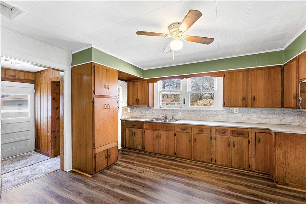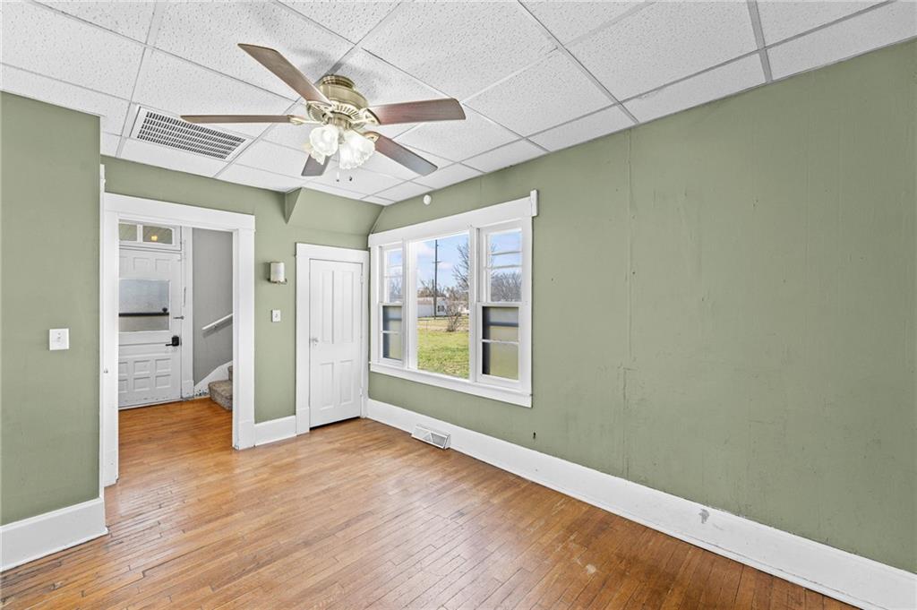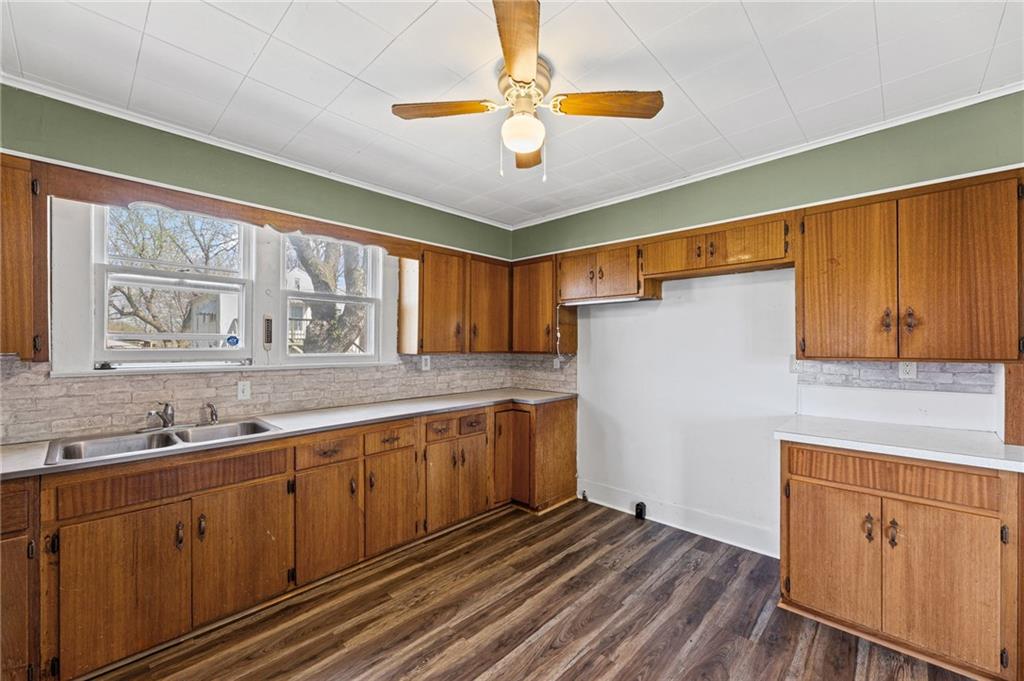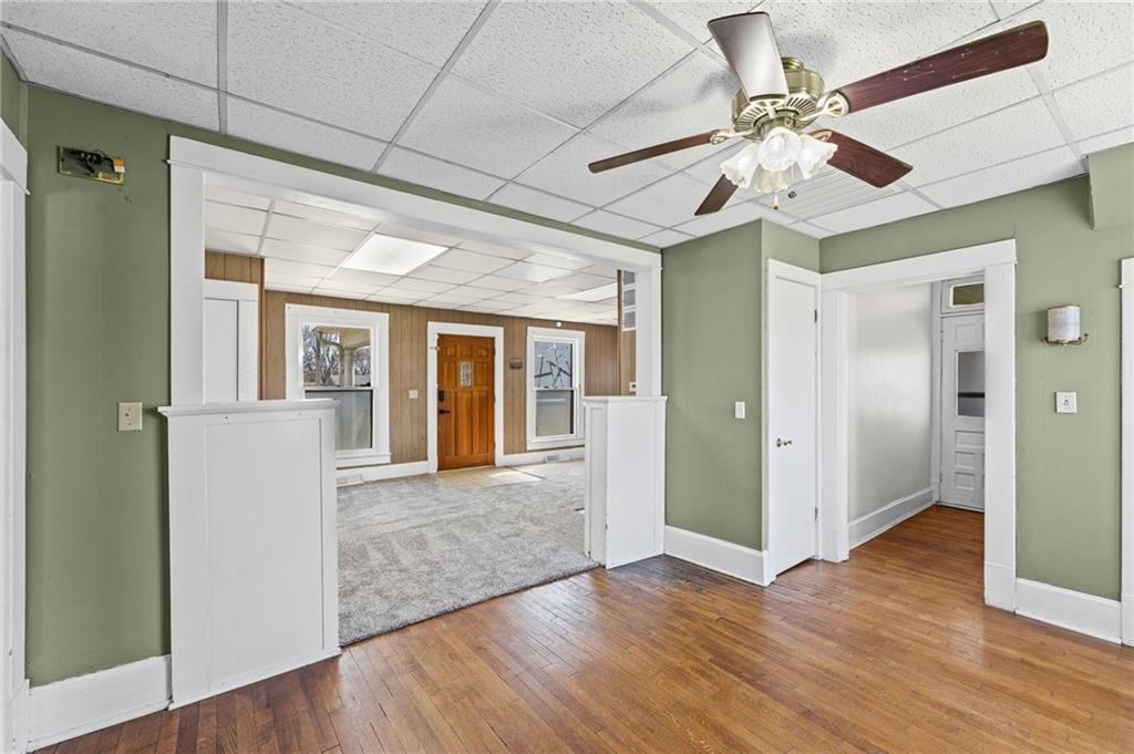 Incredible opportunity to own a piece of Iola history on a massive footprint! This well-maintained traditional bungalow sits on a giant corner lot spanning over 26,000 square feet, consisting of two individual lots. The home features a functional layout with a formal dining room and a convenient main-level utility room located just off the kitchen. The exterior is a true standout, offering a covered deck, a charming porch, and an oversized detached two-car garage perfect for hobbies or extra storage. Move-in ready with updated flooring and fresh carpet throughout, this home is eligible for multiple financing options including FHA, VA, and USDA loans