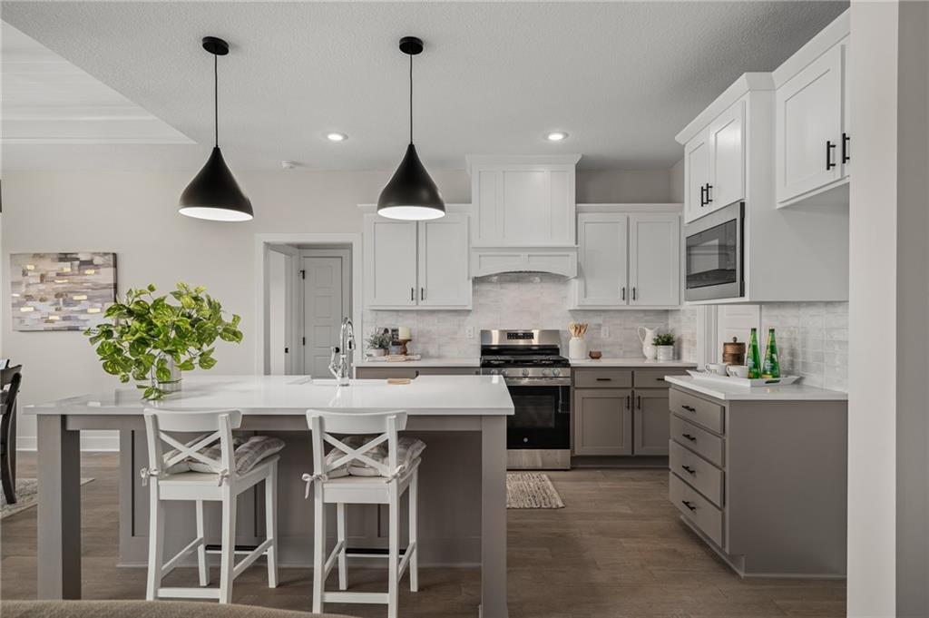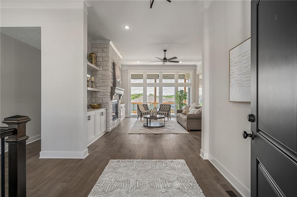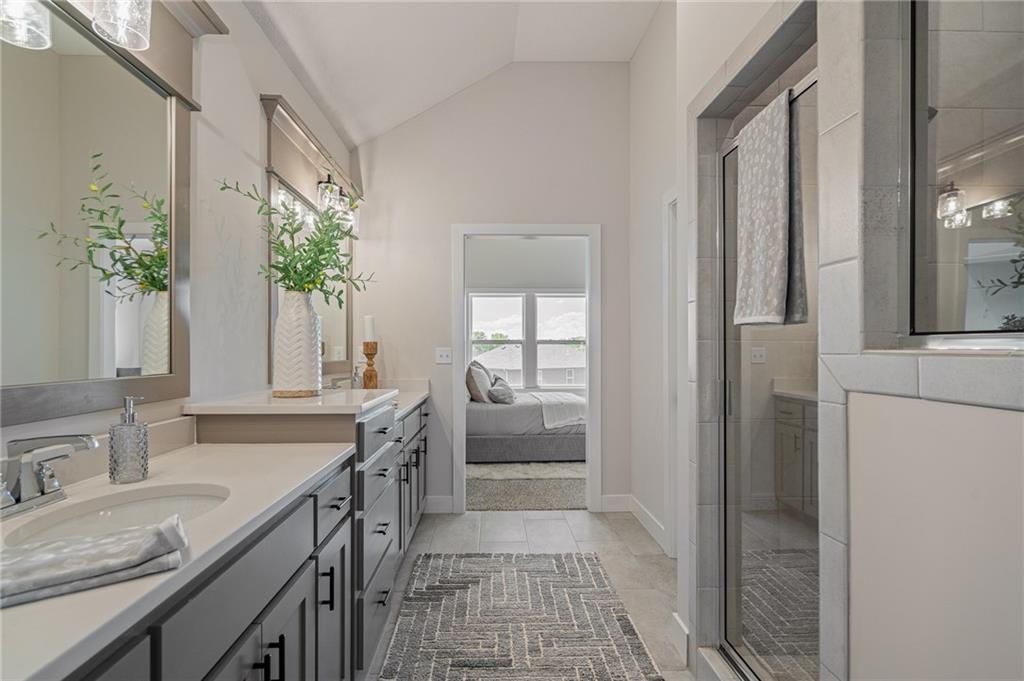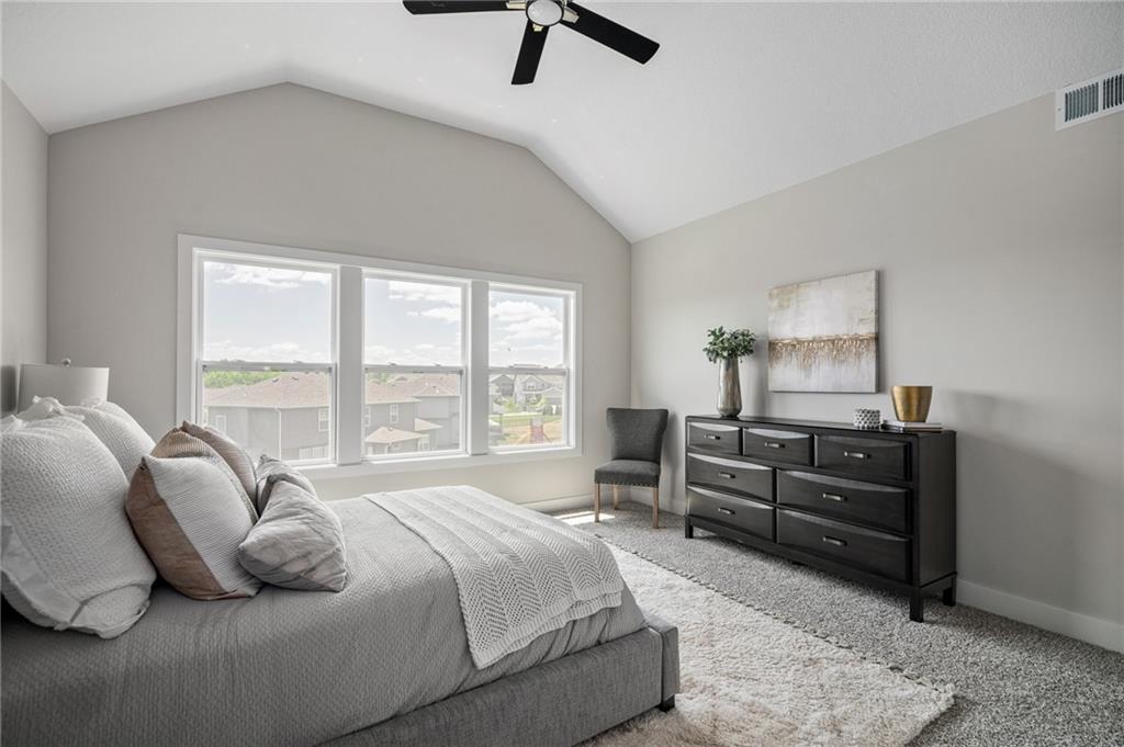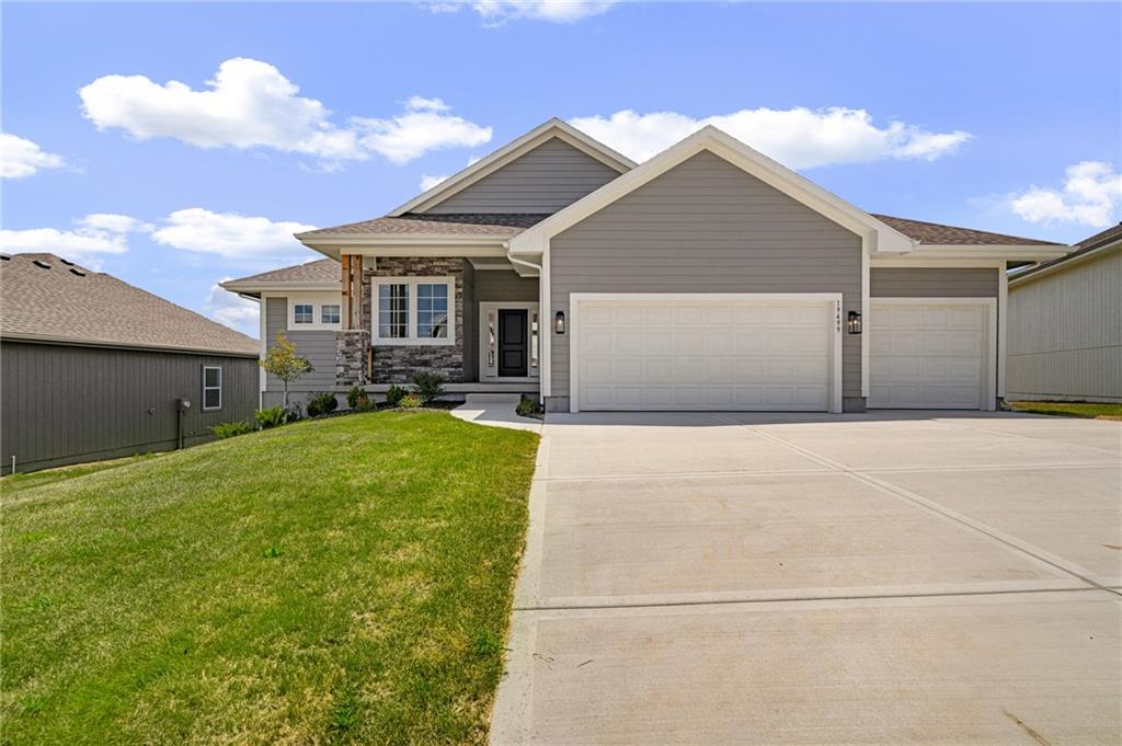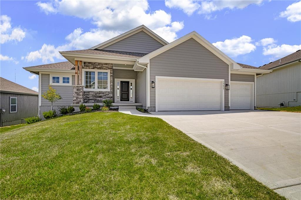 Discover The Payton, a masterfully designed floor plan by Prieb Homes that offers the perfect blend of luxury, comfort, and modern functionality. Located in the highly sought-after Prairie Farms community, this home features 4 spacious bedrooms, 3 full bathrooms, and a 3-car garage across an expansive 3,121 sq. ft. layout. A chef’s dream featuring a large center island, granite countertops, custom cabinetry with soft-close drawers, a walk-in pantry, and stainless steel appliances. A wide-open space centered around a cozy fireplace, flooded with natural light from a wall of windows. A private retreat with vaulted ceilings, double vanities, a tiled walk-in shower, and a massive closet that conveniently connects to the laundry room. Two additional bedrooms and a full bath are located on the main floor, perfect for guests or a home office. The finished lower level boasts a massive rec room that walks out to a patio, plus a 4th bedroom and full bath. Significant unfinished space for storage. Living in Prairie Farms means enjoying top-tier amenities including a swimming pool with a "Signature Barn" cabana, a play area, and miles of walking trails. You are just steps away from the newly renovated Lake Olathe, offering a swim beach, marina, and aqua park. Located in the award-winning Olathe School District (Clearwater Creek Elementary, Oregon Trail Middle, and Olathe West High), this is more than a home—it's a lifestyle. Located in the new phase of Prairie Farms