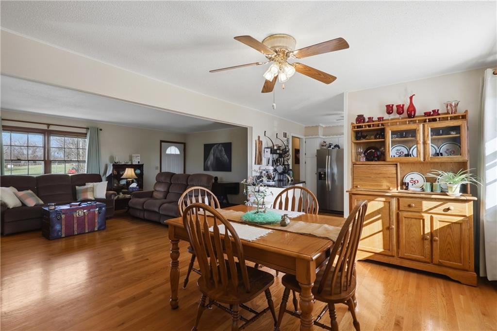 Rare opportunity to own a beautiful 9-acre property offering the perfect blend of country living and everyday convenience. This 3-bedroom, 1-bath home features a warm and inviting layout with hardwood floors, abundant natural light, and a cozy fireplace—creating a comfortable space to call home. The property is thoughtfully set up for both lifestyle and functionality, featuring two kitchens, making it ideal for multi-generational living, canning, entertaining, or added flexibility for your needs. Step outside and enjoy everything this acreage has to offer—fully fenced and horse-ready, complete with a barn, open pasture, and a scenic pond that adds both beauty and recreation to the property. Whether you're looking to bring animals, start a hobby farm, or simply enjoy wide open space, this property is ready for it. Additional features include a 2-car detached garage, ample outdoor space, and a peaceful setting surrounded by nature, while still being within easy reach of nearby amenities. Enjoy the new Furnace and A/c is only 6 months old. If you’ve been searching for acreage with versatility, charm, and room to grow—this is it.