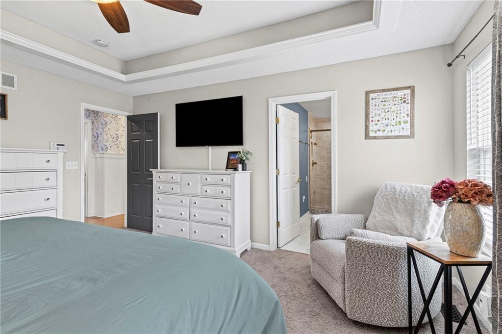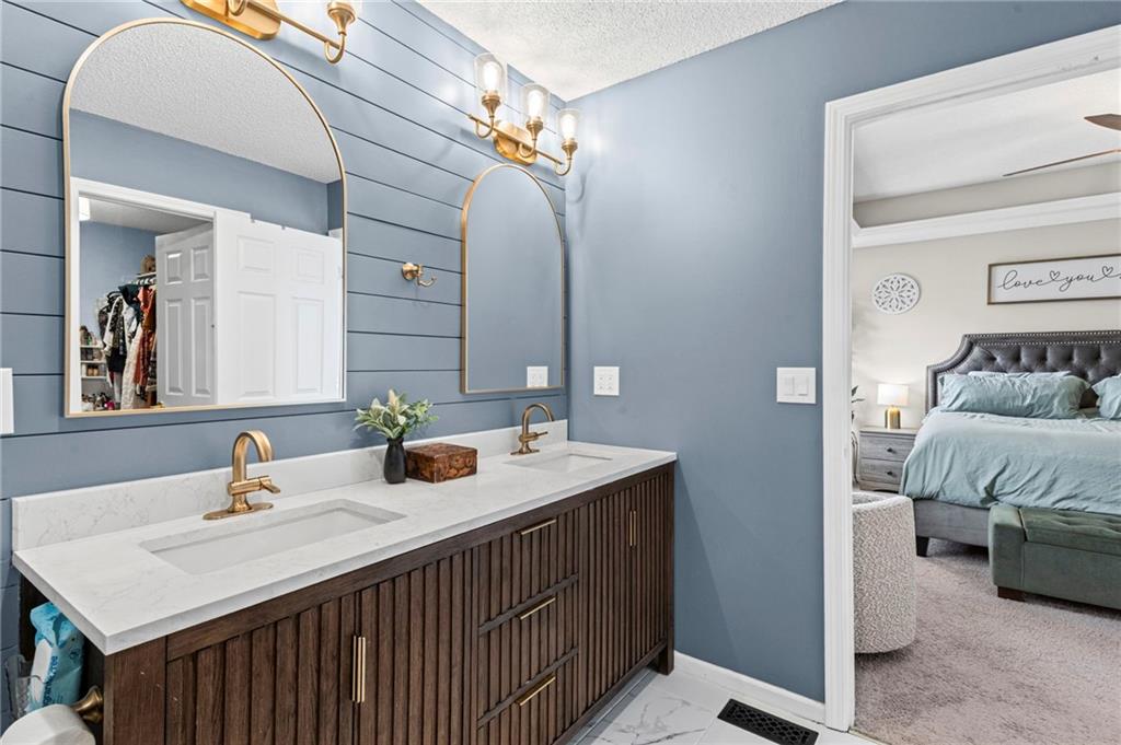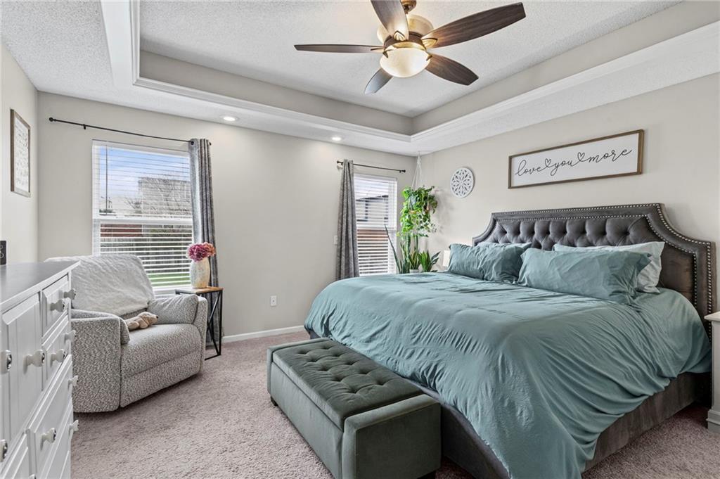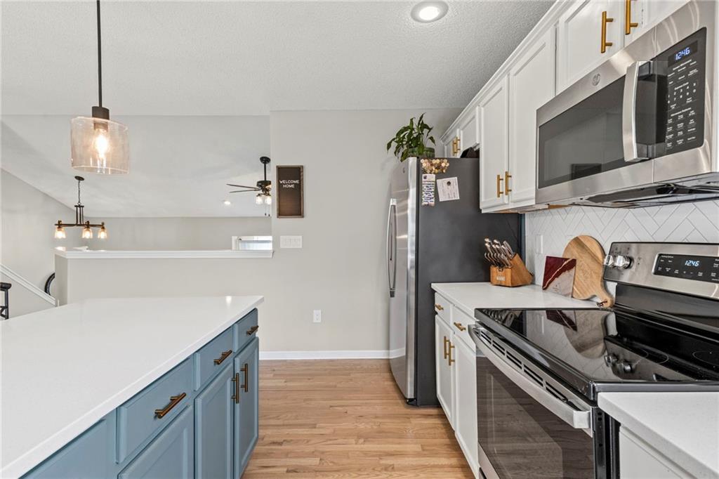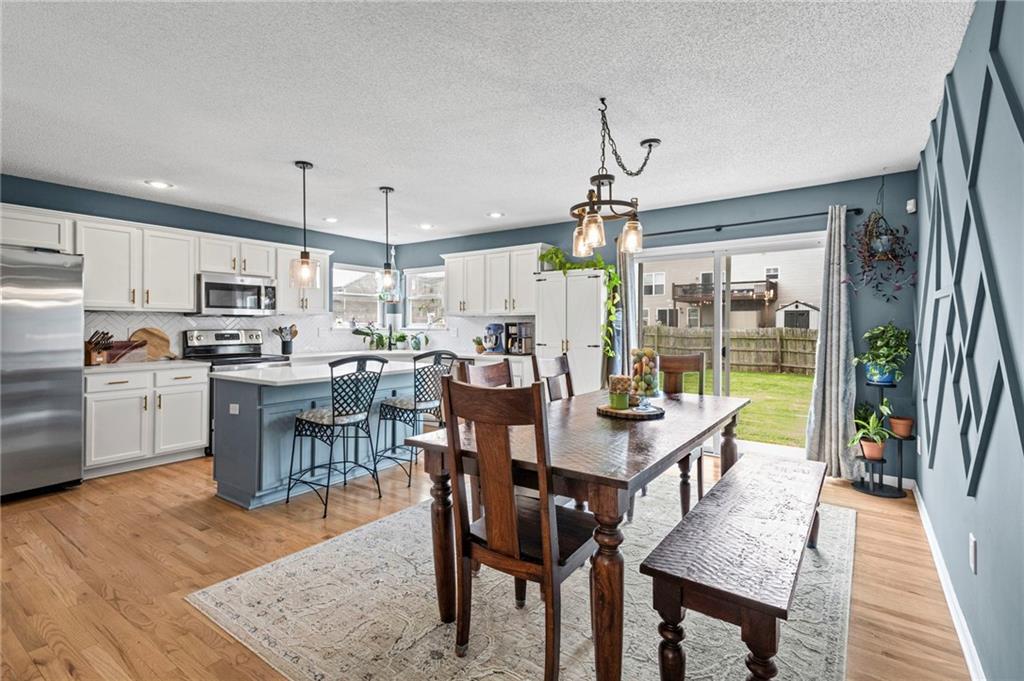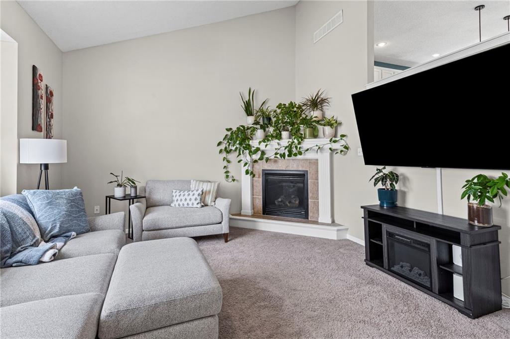 Beautiful 3-bedroom, 2-bath home in desirable Valley Hill Estates. The list of recent updates is endless. The kitchen features quartz countertops, a subway tile backsplash, painted cabinetry, and new stainless steel appliances. The dining area showcases refinished hardwood floors, a stylish accent wall, and access to the back patio through a sliding glass door. The inviting living room offers a vaulted ceiling and a tiled gas fireplace, creating a warm and open gathering space. The hall bathroom was fully renovated in 2024 with updated lighting, hardware, tile flooring, and a new vanity. Fresh interior paint and wallpaper add a modern touch throughout the home. Spacious primary suite includes a walk-in closet, double vanity, tiled shower, tray ceiling, shiplap accent wall, and updated fixtures. Major exterior improvements include a new roof, flashing, gutters, and downspouts, all completed in 2025. Located near Butterfly Trail and neighborhood pond, this home offers convenient access to outdoor recreation. Enjoy the charm of a quiet community with close proximity—just 2 miles—to shopping, dining, and amenities along Adams Dairy Parkway. Situated in the highly regarded Grain Valley School District with easy highway access. Don’t miss this exceptional opportunity to own a meticulously cared-for home.