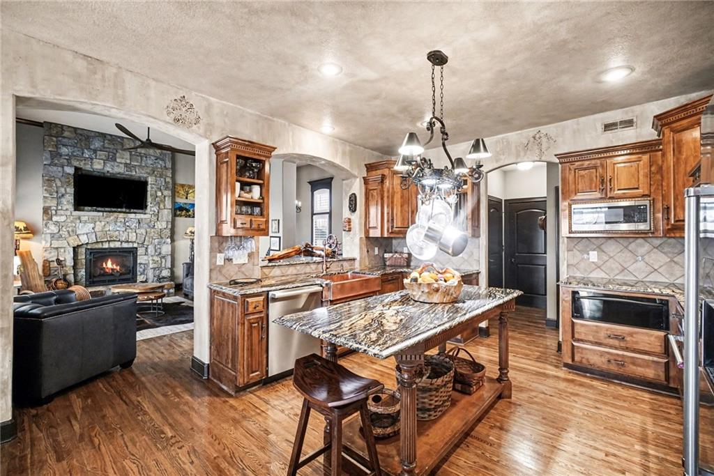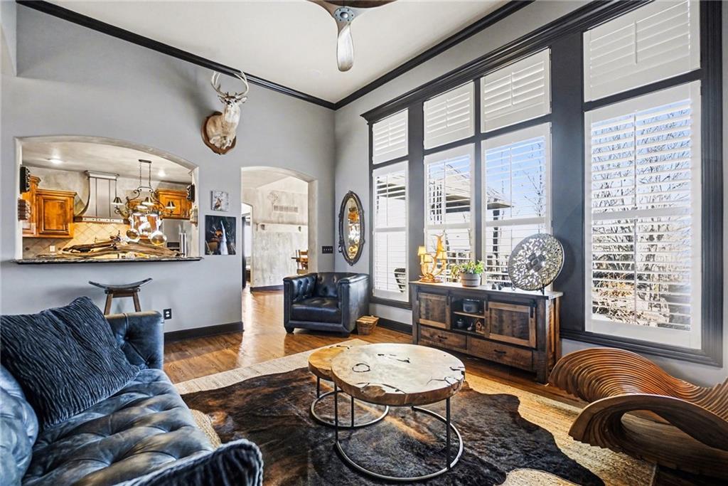 Welcome to an exceptional residence in one of the area’s most desirable neighborhoods, Staley Farms - The Elan, where elegance & updates, thoughtful design & extraordinary outdoor living come together beautifully. This luxurious home offers open living spaces, refined finishes, with exceptional attention to detail throughout. 10009 N Euclid is the definition of "better than new" and offers luxury living both inside and out. Inside, the main level showcases rich hardwood floors, abundant natural light, and a flowing layout designed for both comfortable main floor living and spacious lower level with a walkout basement. The kitchen opens seamlessly to an impressive high-end outdoor deck and covered patio, creating an ideal setting for gatherings, quiet mornings, or evening relaxation. A true standout of this property is the breathtaking garden environment—carefully cultivated over 20+ years by the current owner, a true landscaping guru, who has created a magical outdoor retreat filled with mature plantings, pond with waterfall, seasonal beauty, and peaceful spaces to enjoy throughout the year. Additional premium features include, along with quality craftsmanship: a whole-house generator for added comfort and peace of mind, a custom stone fireplace which adds warmth and character, making the home feel like a private resort. A garage with custom cabinets, epoxy floor and access to even more storage in the attic above garage. The sellers are the original homeowners and therefore are able to provide a very unique opportunity to the future owner. The new owner will be able to opt in or remain out of the maintenance provided neighborhood plan. The current owners have never opted in, in the 20+ years of living there, and see real value in remaining in that position. This home is only 1 of 8 remaining in the Elan neighborhood with this opportunity. Don't miss your chance to live in this impeccably cared for property in Staley Farms with golf, pools & community living!