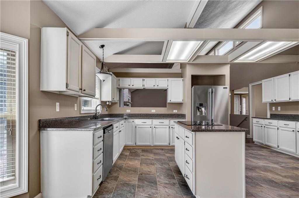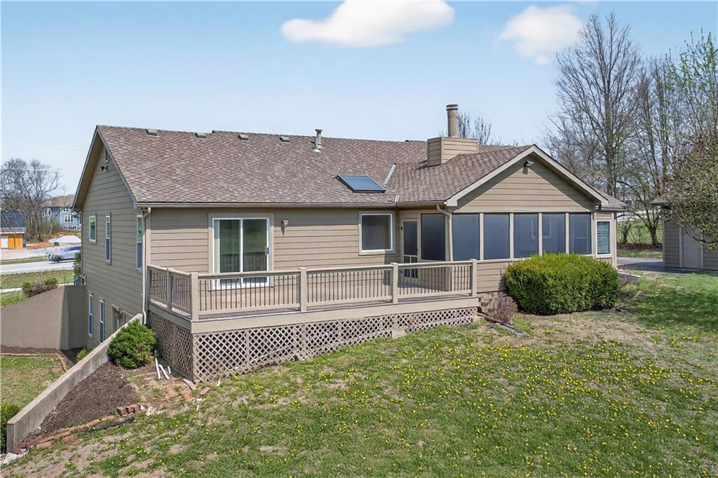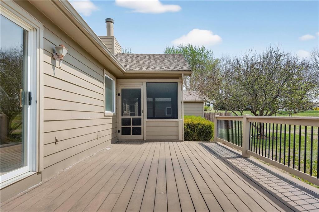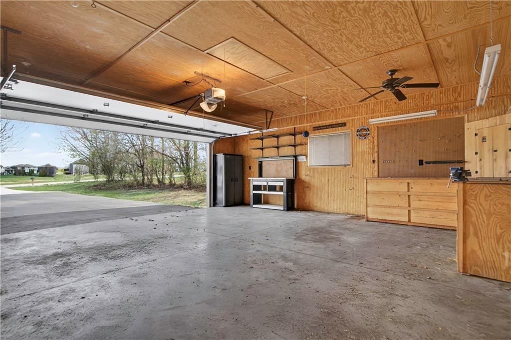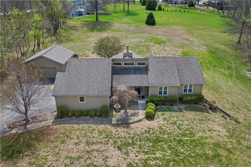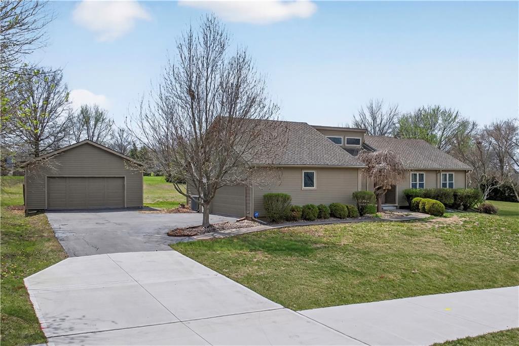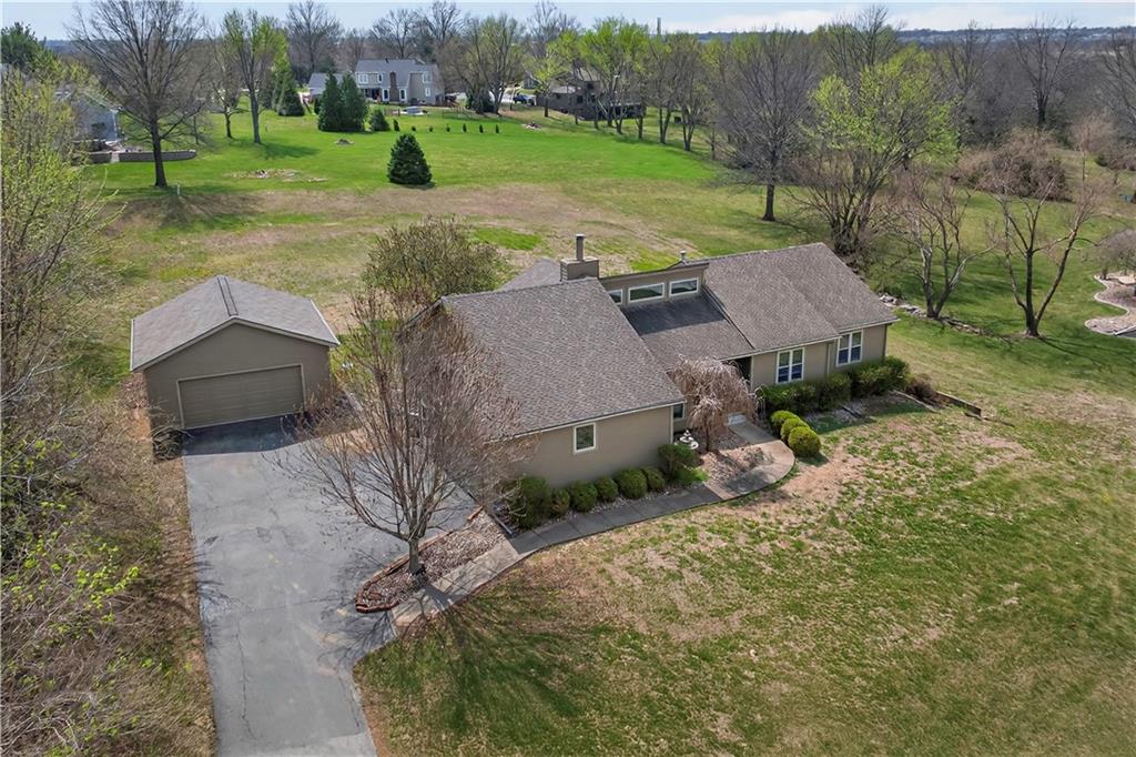 True ranch on 1+ acre in south Johnson County—an increasingly rare find. Located along 167th Street, this property offers space, function, and long-term upside in an area seeing continued growth and higher-end development. The home features solid construction and a highly livable floor plan, ready for the next owner to update and make their own. Main level includes 3 bedrooms and 2 full baths, with a spacious primary suite offering a jetted tub and direct access to a large deck. Laundry is conveniently located on the main floor. The walkout lower level adds flexibility with an additional bedroom, full bath, multiple finished spaces, and generous storage. A concrete storm shelter is also located in the basement. Car enthusiasts, hobbyists, or anyone needing extra space will appreciate the 4-car garage setup—2-car attached (side entry) plus a detached 2-car garage with finished interior, ideal for a workshop or additional storage. Enjoy a true “country feel” with room to spread out, while still being close to amenities. Invisible fence system already in place for pets. Surrounded by newer and higher-priced homes to the south, this property presents a strong opportunity for value and future appreciation.