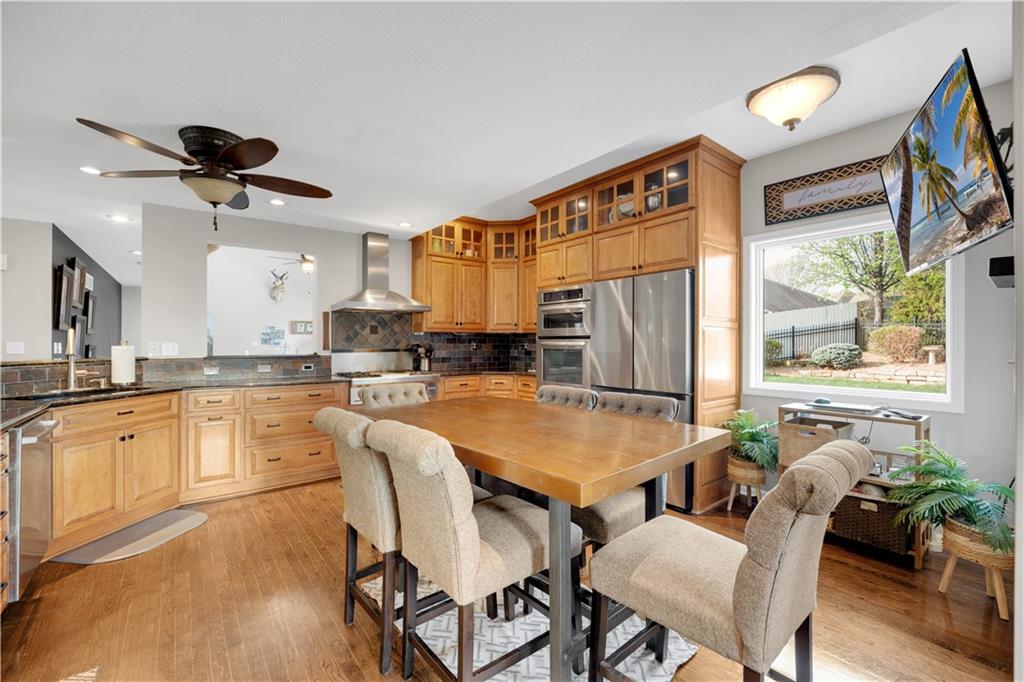 Welcome to this beautiful 1.5-story home with 4 bedrooms, 3.5 bathrooms, 3-car garage,and plenty of space to live, work, and entertain. The main level features a chef’s kitchen with a Wolf gas range, double oven, custom cabinets, and hardwood floors, along with a formal dining room and a comfortable living room with a fireplace. The primary suite is conveniently located on the main level and includes a full bathroom with a sauna, double vanity, and walk-in closet. You’ll also find the laundry room on the main level for added convenience. Upstairs offers two oversized bedrooms with large closets and a full bathroom. The finished lower level provides even more space with a custom bar, family/rec room, fourth bedroom, full bathroom, and large private office that’s perfect for working from home or a hobby space. Outside, enjoy the fenced backyard, irrigation system, and even a cold plunge area! This home offers a great mix of comfortable living space, unique features, and room to spread out.