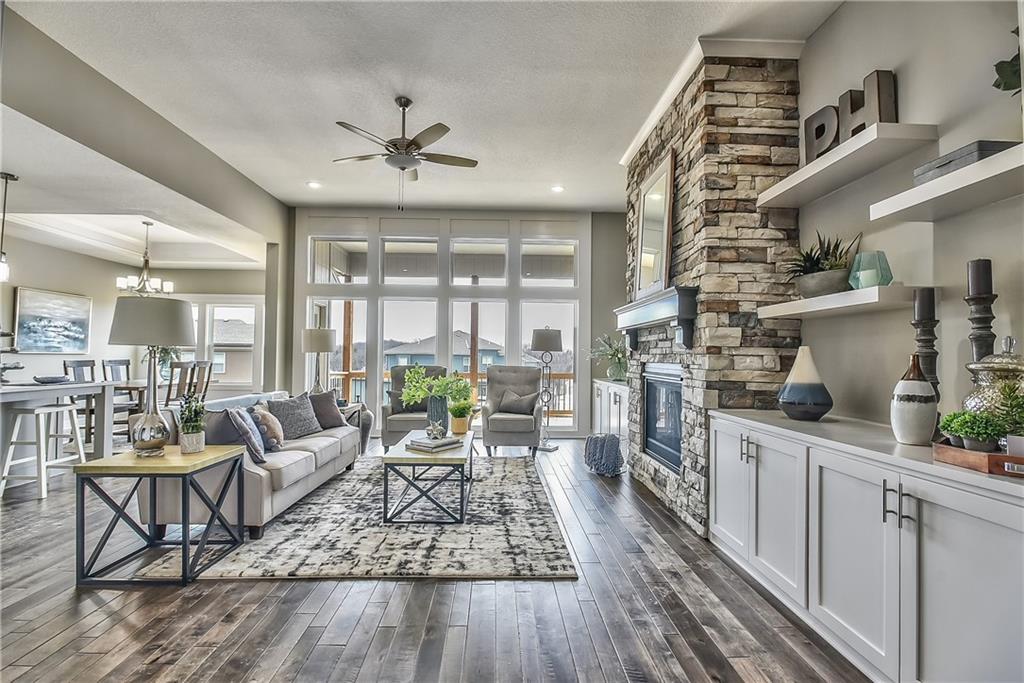 Prieb's all-new Payton Rev 1.5 plan is a stunning home located in a tranquil setting, backing to greenspace. This beautiful home features a spacious great room with a floor-to-ceiling stone fireplace and hardwood floors. The light and bright kitchen boasts a large island with an apron-front sink, recirculating stove hood, built-in microwave, soft-close drawers and doors, and painted kitchen cabinets. The main level of this home features three bedrooms, while the finished walkout lower level has an additional bedroom, a family room, and a third full bath. The walk-up wet bar is a great addition, perfect for entertaining guests or enjoying a night in with family. The covered 17x8 deck provides the perfect spot to enjoy the beautiful views of the treed greenspace, while the large walk-out lot provides easy access to the outdoors. This home is a great option for anyone looking for a functional and beautifully designed living space in a serene setting.