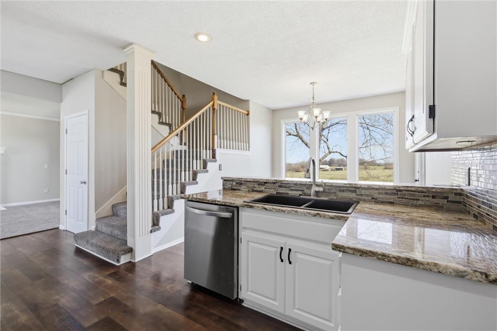 SELLERS ARE INSTALLING BRAND NEW CARPET THROUGHOUT THE ENTIRE HOME!!! Location, location, location! Just minutes from Legends Outlets, Children’s Mercy Park, dining, entertainment, and the new Kansas City Chiefs stadium development, this beautifully updated home offers the perfect mix of convenience and comfort. Located in the sought-after Bonner Springs School District and within walking distance to Delaware Ridge Elementary, this property backs to acreage for a peaceful, serene view. Enjoy so many updates including blinds, luxury vinyl plank flooring, granite countertops, painted cabinets, new sink and faucet, updated bathrooms, HVAC (2022), water heater (2021), newer roof, wooden fence, patio, and shed. The finished basement adds a bonus family room, huge storage space, and second laundry area, while the main-level laundry provides extra convenience. A charming barn door adds character to the updated primary suite. Move-in ready with an unbeatable location!