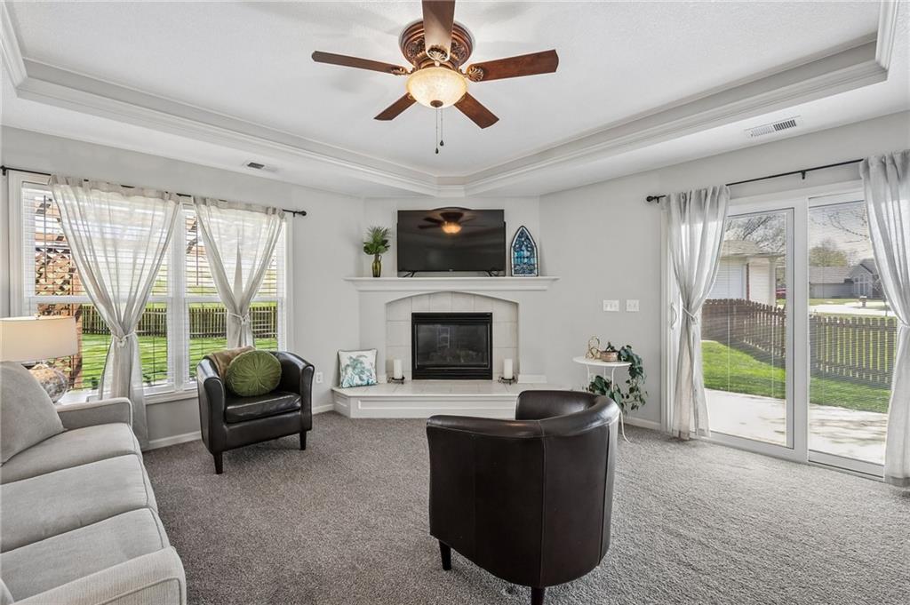 OFFER DEADLINE ON FRIDAY, 4/17 AT 3PM: Main Level Living with open and light floorplan!! Beautiful, large fenced lot located in peaceful Timber Park! This impeccably maintained true Ranch offers 4 spacious bedrooms, welcoming living area with formal dining room as well as a casual dining area. This pristine kitchen offers lots of countertop space, nice size pantry and under counter lighting. Warm & inviting living area with gas fireplace. Spacious primary bedroom with walk-in closet. 3 add'l bedrooms with 2 full bathrooms. The large 4th bedroom could also serve as an office with double door entry. Extra depth in garage provides more storage along with attic space. Brand new impact resistant roof and new gutters! HVAC less than 2 yrs old! Located in convenient Platte City location with easy access to shopping, airport and highways!! Make this fantastic home yours!