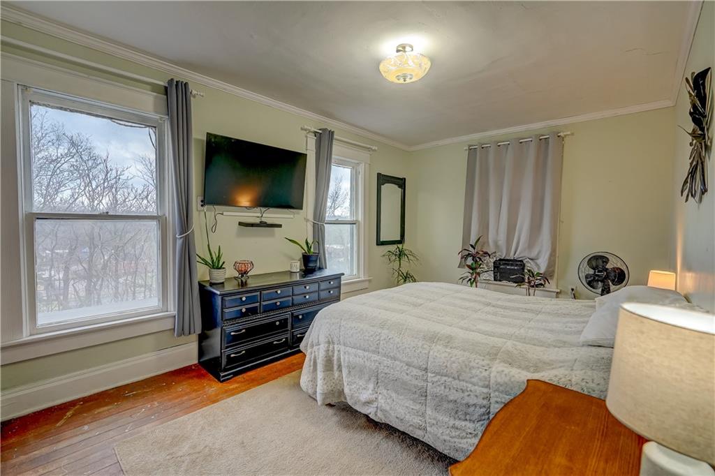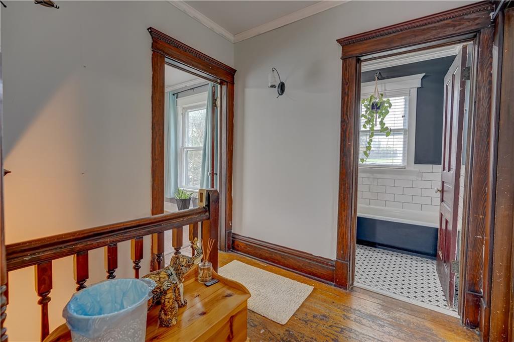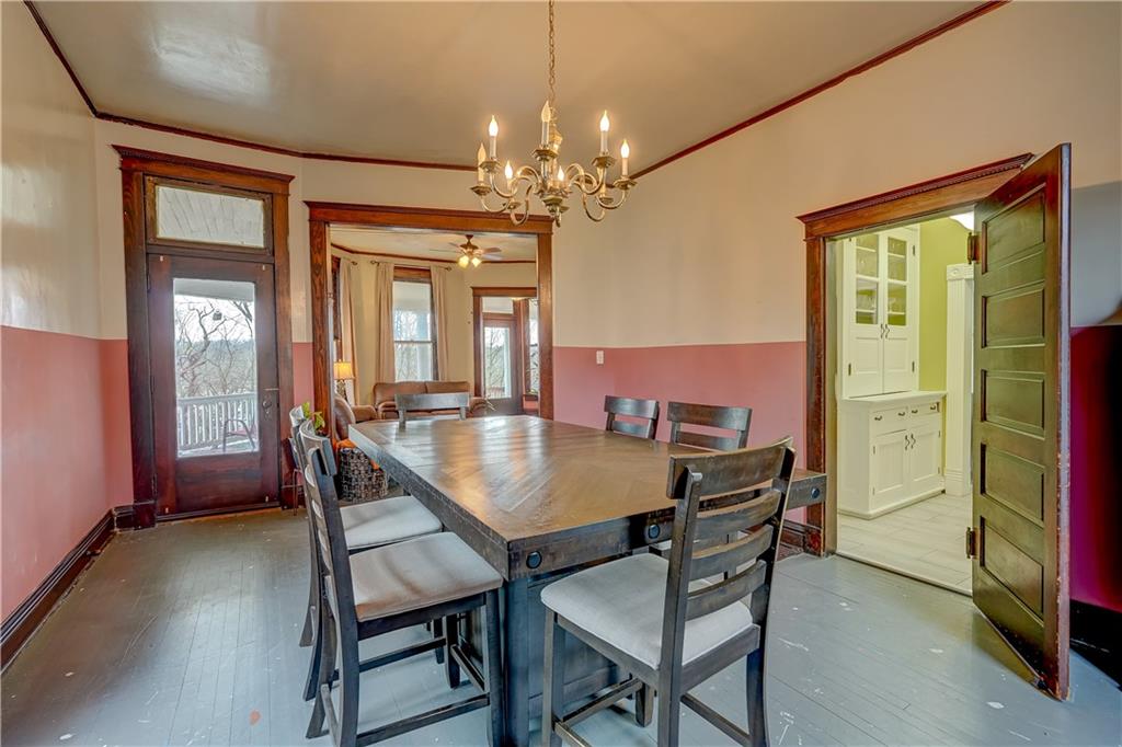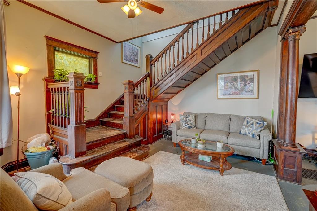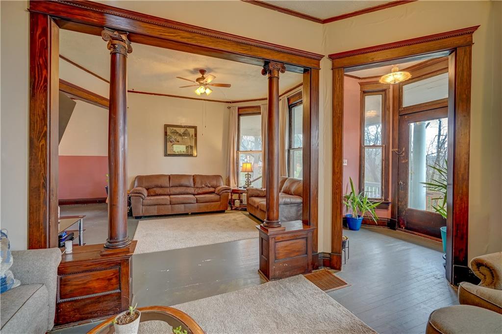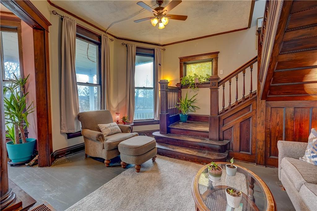 Welcome to this spacious, timeless home offering over 3,000 square feet of living space priced under $225,000! This 3 bedroom, 2 bathroom home also offers the potential for a 4th bedroom, giving you flexibility for a growing family, home office, or guest space. You’ll immediately fall in love with the charm throughout, featuring original hardwood floors, trim, and large windows that fill the home with natural light. This home offers a great blend of original details and the opportunity for a buyer to add their own cosmetic touches over time. Major improvements have already been completed, providing true peace of mind—new HVAC (2025), roof approximately 3 years old, water heater replaced in 2024, upgraded electrical panel, and a brand new sewer line (January 2025). Additional upgrades include a water softener and reverse osmosis system installed in 2025. The layout offers incredible space and functionality with multiple living areas, formal dining room, and a large laundry room. Unique character continues with two separate staircases leading upstairs, adding both charm and convenience. The unfinished basement provides great storage and includes a side walk-out. Step outside and enjoy the large wraparound porch with two entry points, perfect for relaxing and taking in the views. Nestled in a welcoming, friendly neighborhood, the home overlooks downtown and the historic Elms, all within walking distance, and is conveniently located near a new elementary school you can see right from the front porch. You’ll also appreciate off-street front parking along with a spacious concrete driveway in the rear leading to a detached garage. With its size, location and major system updates, this home presents a fantastic opportunity to own a large property full of character.
