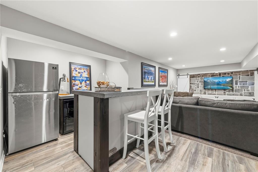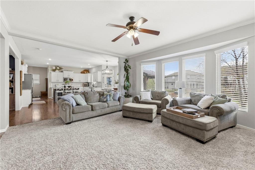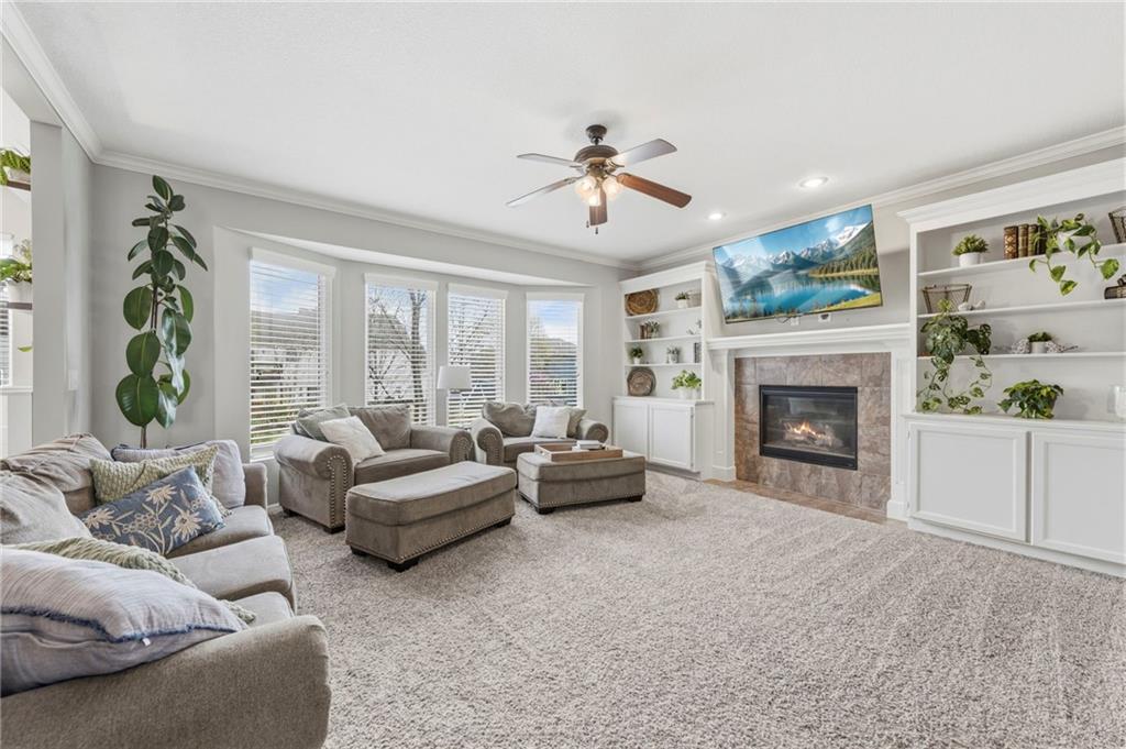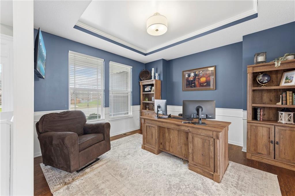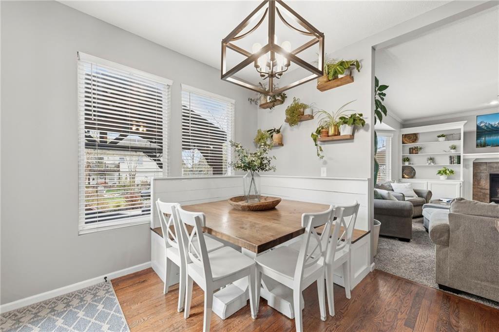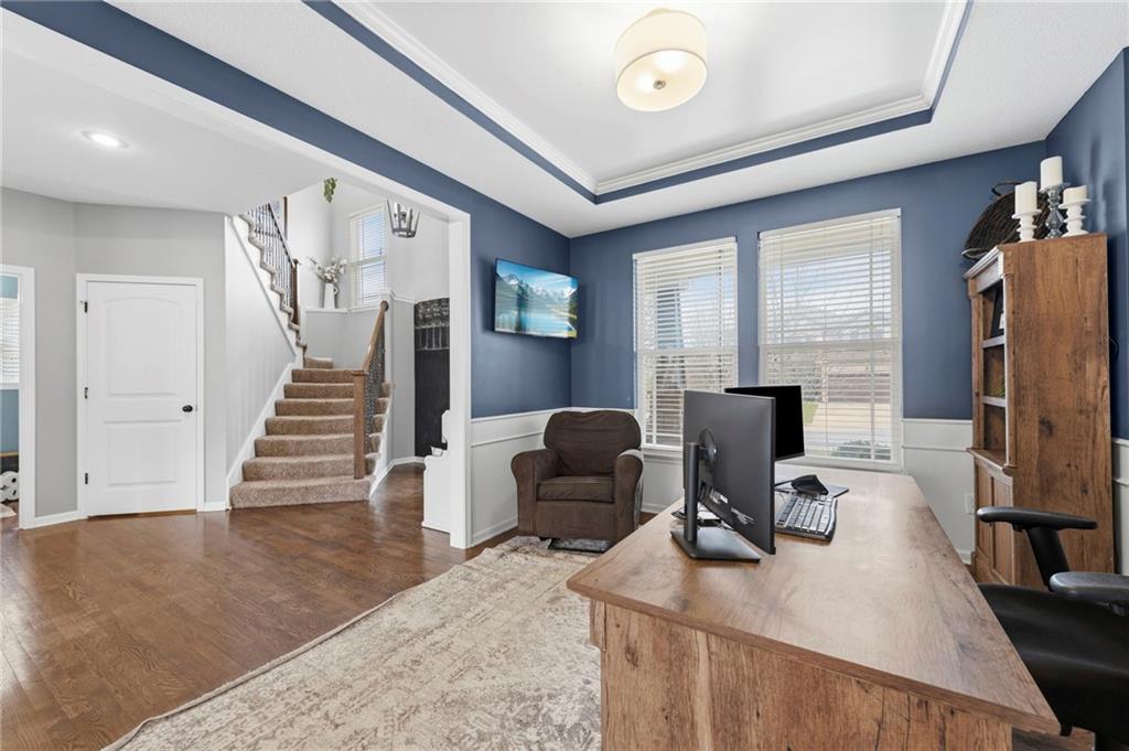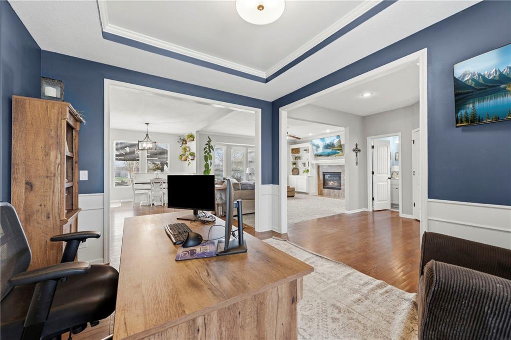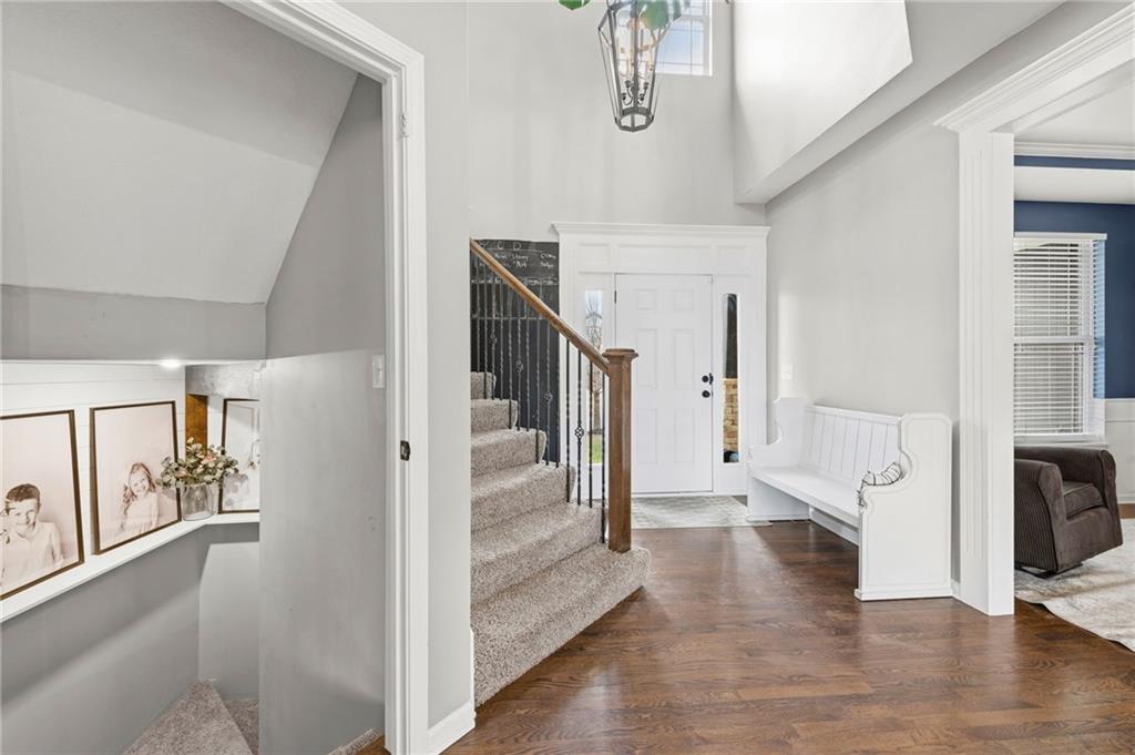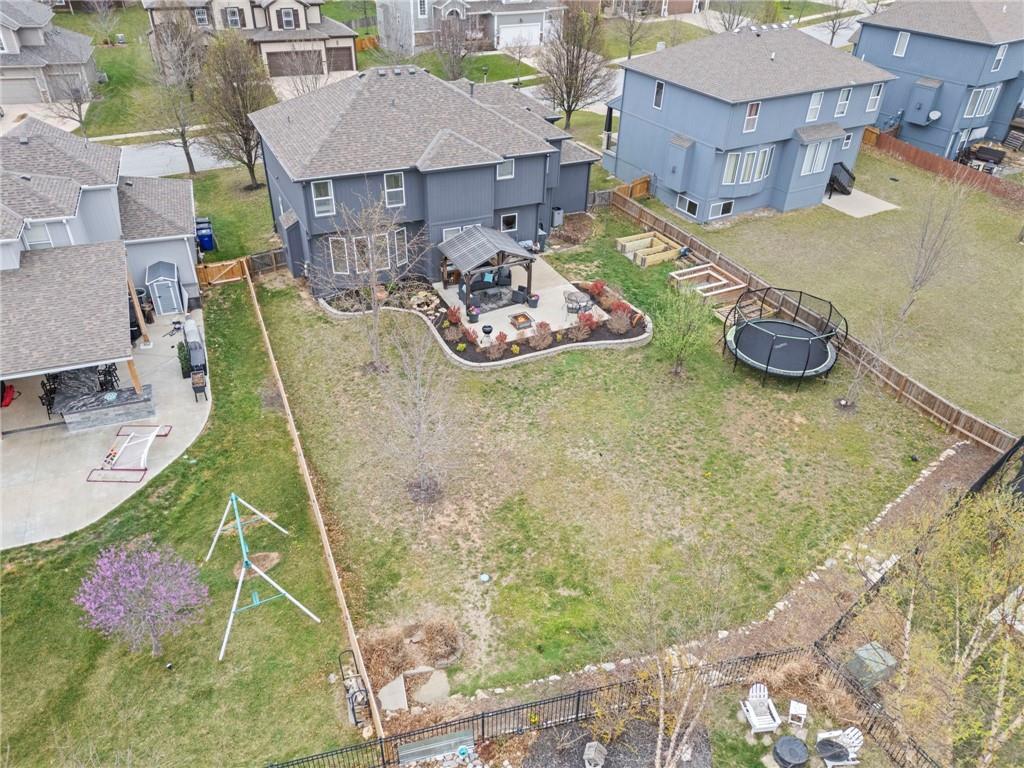 Open House Saturday, 4/18, 2p-5p. Why wait for a new build and pay more to get less? This 4-bedroom, 3.5-bath, 3-car garage home offers a spacious, open layout with ideal updates and is ready now! The beautifully updated kitchen features hardwood flooring, stainless steel appliances, granite countertops, an eat-in area with custom, built-in seating and table, and a large walk-in pantry. Just off the kitchen, enjoy a bright living room with fireplace and custom built-ins, plus a versatile dining room or office and convenient half bath. Upstairs, you’ll find the incredible primary suite featuring large ensuite and massive closet. Down the hall there are three additional bedrooms, a jack-and-jill bath, an additional full bath, and the convenience of second-floor laundry! The finished basement provides excellent additional living space with a bar area, under-stair play nook, a non-conforming bedroom or flex room, and plenty of storage space w/egress window. Step outside to a level backyard with mature landscaping and plenty of room for entertaining. Located just a short walk from neighborhood amenities including the pool, park, walking trails, and Lake Olathe. To make this even better, the roof and mechanicals are nearly new as well! A true full-package home—don’t miss it! Be sure to check out the virtual tour to fully appreciate the layout and space. Schedule your showing today.
