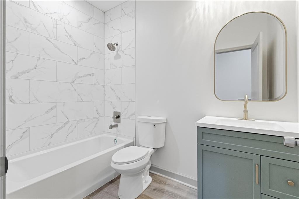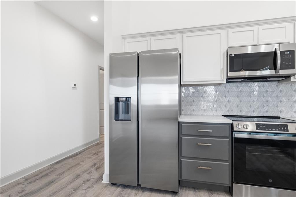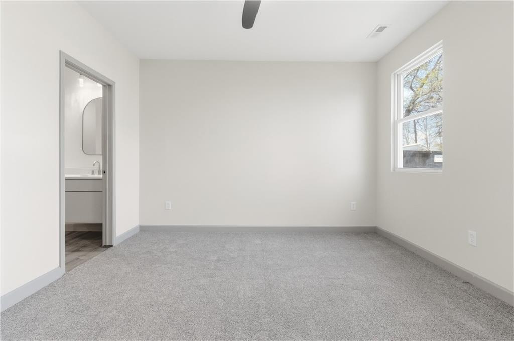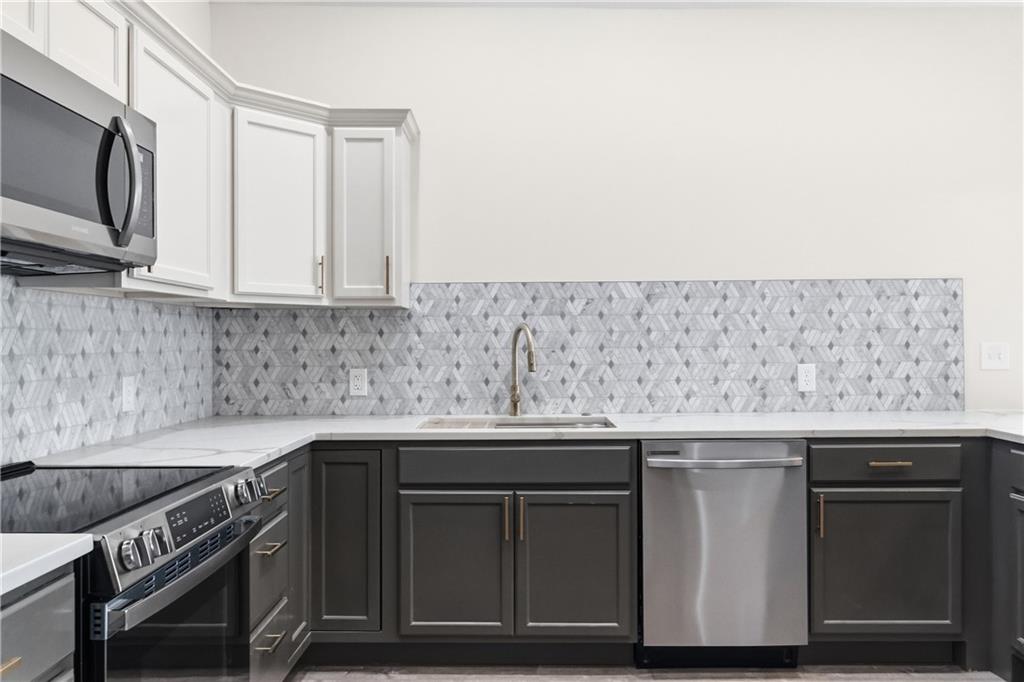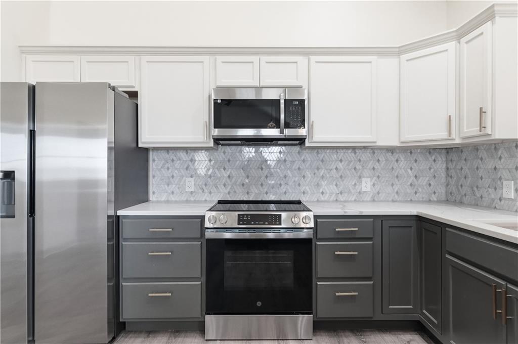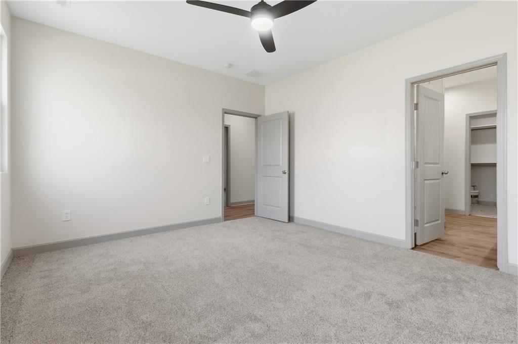 Welcome to this stunning brand-new construction home offering over 1,800 square feet of thoughtfully designed living space. This 3-bedroom, 2-bath home features a bright and open layout, highlighted by a spacious living room with impressive 16-foot vaulted ceilings and abundant natural light, while the remainder of the home offers comfortable 9-foot ceilings throughout. The modern kitchen is a true centerpiece, complete with sleek quartz countertops, a stylish marble backsplash, stainless steel appliances, and an oversized pantry providing ample storage. Durable and attractive LVP flooring flows seamlessly through the living, dining, and kitchen areas. The private primary suite serves as a relaxing retreat, featuring a spa-like bathroom with a double vanity, quartz countertops, and a beautifully tiled walk-in shower. The suite also includes a walk-in closet with built-in shelving for optimal organization. Each bedroom is equipped with ceiling fans for added comfort. Step outside to a brand-new deck, perfect for relaxing or entertaining. This is the one you’ve been waiting for—don’t let it slip away!