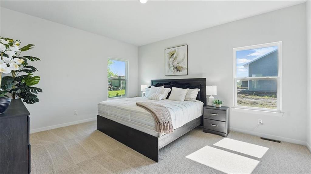 Welcome to Prairie Trace, where modern design meets timeless elegance in this exceptional home crafted by D.R. Horton, “America’s Builder.” The Newcastle... This home stands out with James Hardie® siding and stone and shake shingle accents, providing both durability and timeless curb appeal. You'll be greeted with a three-rail, two-panel insulated front door that enhances both curb appeal and energy efficiency. Step inside to find a beautifully appointed interior with 9-foot ceilings that exude sophistication. The chef’s kitchen is the heart of the home, featuring 36-inch painted maple cabinets, quartz countertops, and state-of-the-art Whirlpool® stainless steel appliances. Bathrooms feature quartz-topped vanities and Moen® chrome faucets. The primary bath offers a 5-foot shower with a framed glass enclosure. This home is designed for the future with advanced Smart Home technology, including a Honeywell® Pro Z-Wave® Thermostat, Amazon Echo, and a connected home panel, allowing you to control and monitor your home from anywhere. Energy efficiency is prioritized with LED lighting throughout, a high-efficiency gas furnace, and insulated low E vinyl windows, ensuring comfort and savings year-round. Additional features such as luxury vinyl plank flooring, a spacious garage with opener(s), and detailed wiring solutions like dual data/TV lines in the main bedroom and family room, enhance both convenience and style. D.R. Horton’s commitment to quality is evident in every aspect of this home, offering you a place where luxury, technology, and comfort come together seamlessly. Don’t miss your chance to own this extraordinary home in Prairie Trace. Schedule your private tour today and experience the D.R. Horton difference!