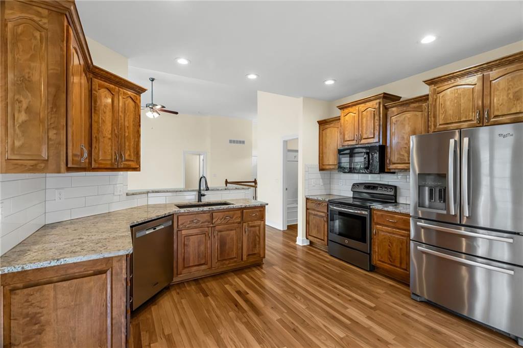 Welcome home to your own private oasis, complete with a serene lake right in your backyard! The Great Room features soaring 12-foot ceilings and stunning lake views, creating a bright and inviting space. Step outside to your covered patio or enjoy easy indoor-outdoor living from the finished walk-out lower level, perfect for relaxing or entertaining. The finished lower level includes 2 bedrooms, a non-conforming 4th bedroom and two full bathrooms, offering flexible space for guests, a home office, or additional living needs. The 3 car garage is huge! All appliances stay! Offer deadline is Monday April 27th at 8:00pm This property does not have to pay home association dues but you get to enjoy living in a wonderful neighborhood with a home association.