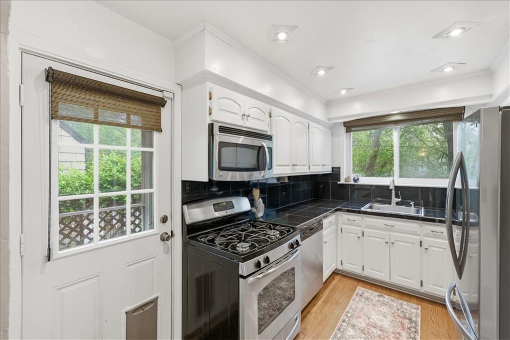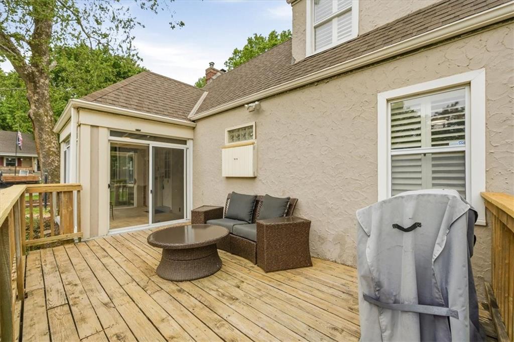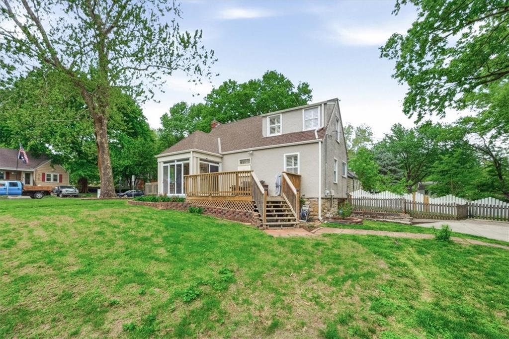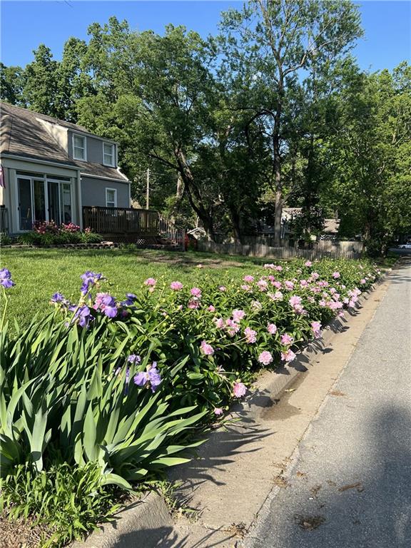 This Roeland Park charmer known as "Peony Lane" with the Peonies blooming this week! It sits on a large corner lot. Side entry garage with extra large driveway. Picket fence! Hardwood floors are newly refinished. Fresh paint inside. Charming Original woodwork and beautiful solid wood doors. 2 full bathrooms with beautiful tile work, one on each floor. 3 Season room / sun porch leads out to a large deck. Basement is solid and dry. Formal dining room. Mature trees in a wonderful neighborhood. Great highway access. Close to downtown and Plaza/midtown.