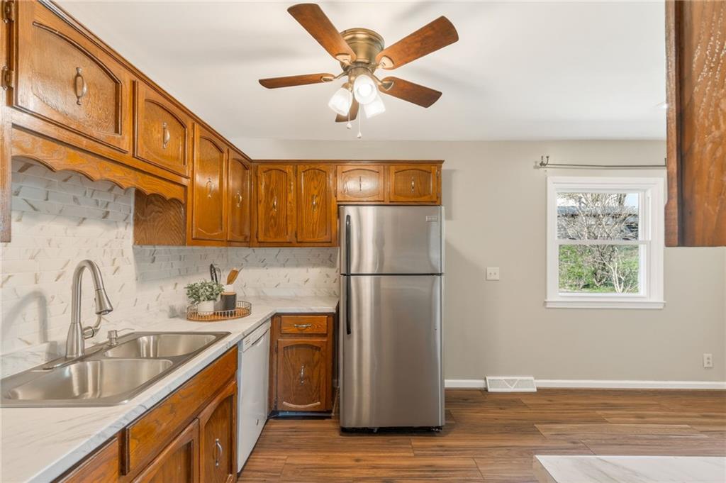 Welcome to 822 Sherrill, which has so much to offer! Newer roof, newer HVAC, newer windows, NEW kitchen backsplash and counter tops, NEW flooring in the basement, no popcorn ceiling on the main/bedroom level, and so much more! This home is not a flip; some of the major cosmetic updates have been done for the convenience of the next homeowner. When you step inside, you will find the living room with newer flooring, the kitchen, and the dining space. Upstairs are the three bedrooms and a full bath. In the lower level is the second living space with a fireplace, laundry room, and a second full bathroom. A fenced-in yard, patio, and a raised garden bed in the backyard. The home is complete with a single-car garage and a double-wide paved driveway for additional parking. Located in a quiet neighborhood with mature trees. Conveniently located near shopping, restaurants, schools, and major highways. Schedule your private showing today, and make this house your home!