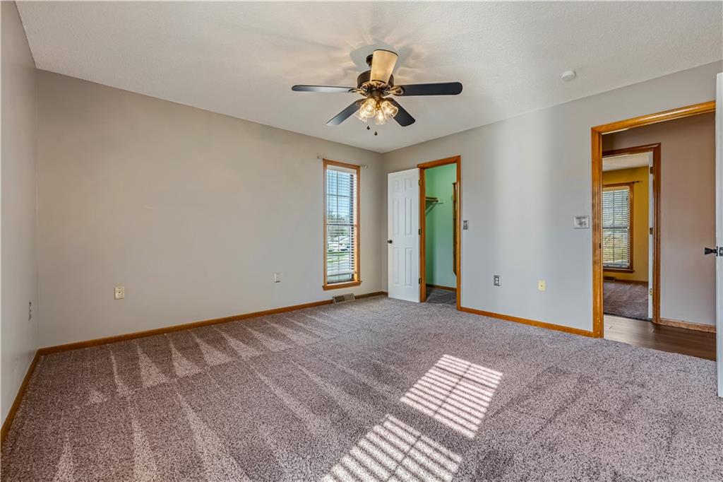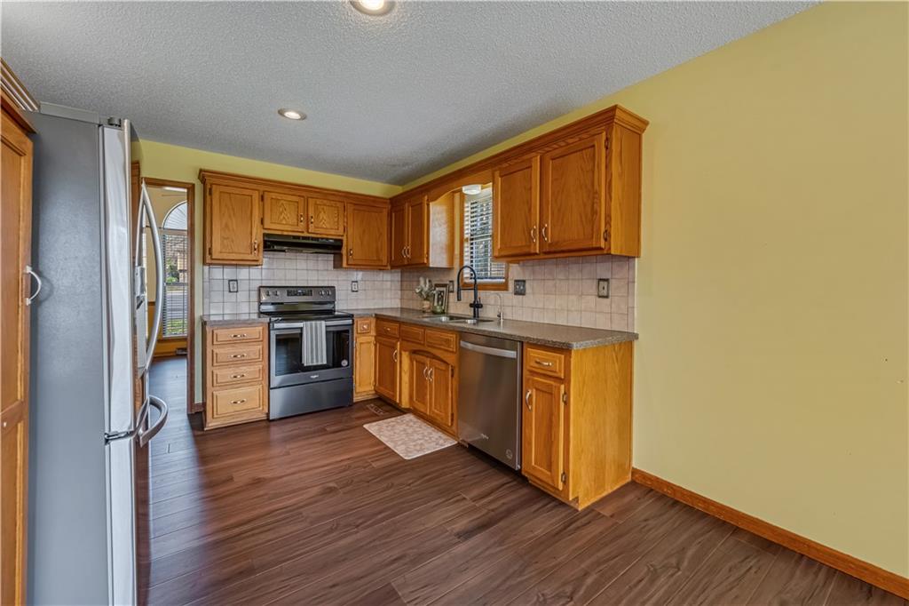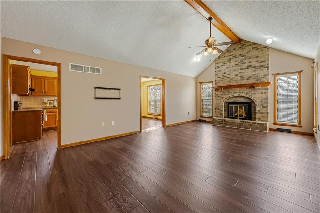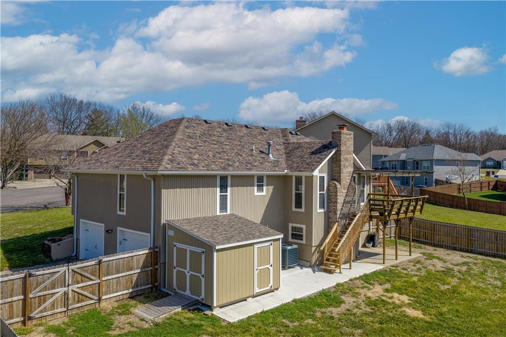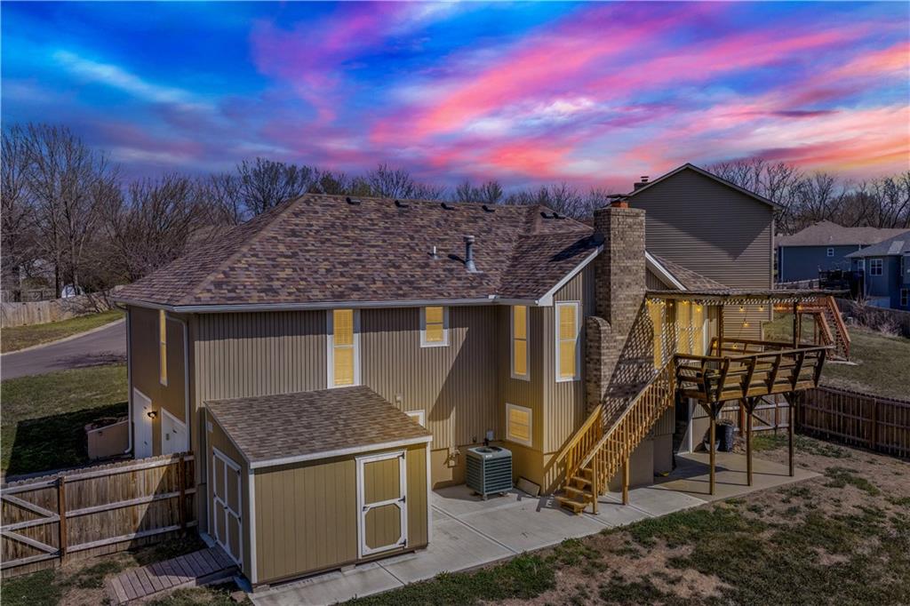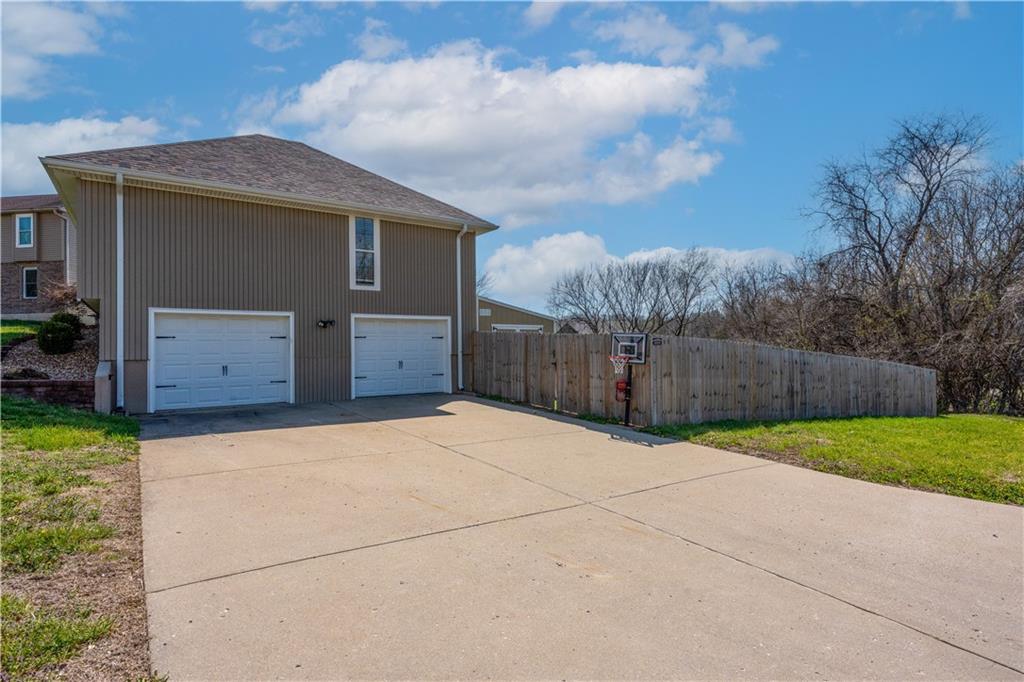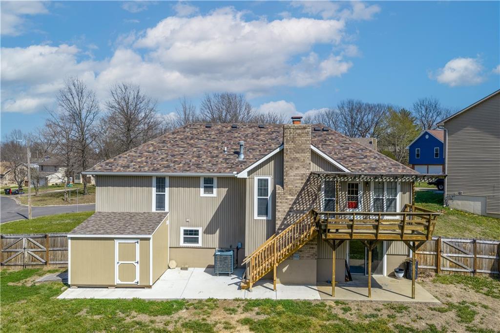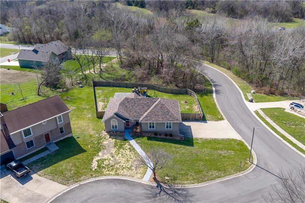 Welcome home! This beautiful home is ready for new memories! Situated on a large corner lot of a cul de sac, within a few minutes of shopping, restaurants, and 50 Hwy for commuting to Whiteman AFB or Kansas City. New wood-look LVP (sellers installed in 2025) runs throughout the main level spaces. The spacious Living Room showcases tall ceilings and a gas fireplace perfect for those chilly winter days. Off the living room is the Kitchen, Breakfast nook and a full Dining Room with lots of natural sunlight. The inviting Kitchen has ample wood cabinets with pantry, solid surface countertops, tile backsplash and stainless-steel appliances that all stay. The main level includes 2 secondary Bedrooms, hallway Bathroom with Laundry, the Primary Bedroom with 2 closets and en-suite Bathroom. Downstairs you will find the Family Room which could be used as second Primary Bedroom with a spacious walk-in closet, an en-suite Bathroom with double sinks and beautifully tiled shower with two shower heads. Head out the patio doors to enjoy time outdoors in the large, privacy fenced back yard (swing set can stay). There is an additional non-conforming room in the basement that would be perfect for an office, 5th bedroom, playroom, etc. You will appreciate the additional storage space in the garage as well as the EV charging station, built-in shelves and workspace. The back deck has new stairs leading down to the newly poured patio extension and storage shed, all added by sellers in 2024. Roof, gutters, and downspouts are just 2 years old! Don't miss out on this wonderful opportunity!