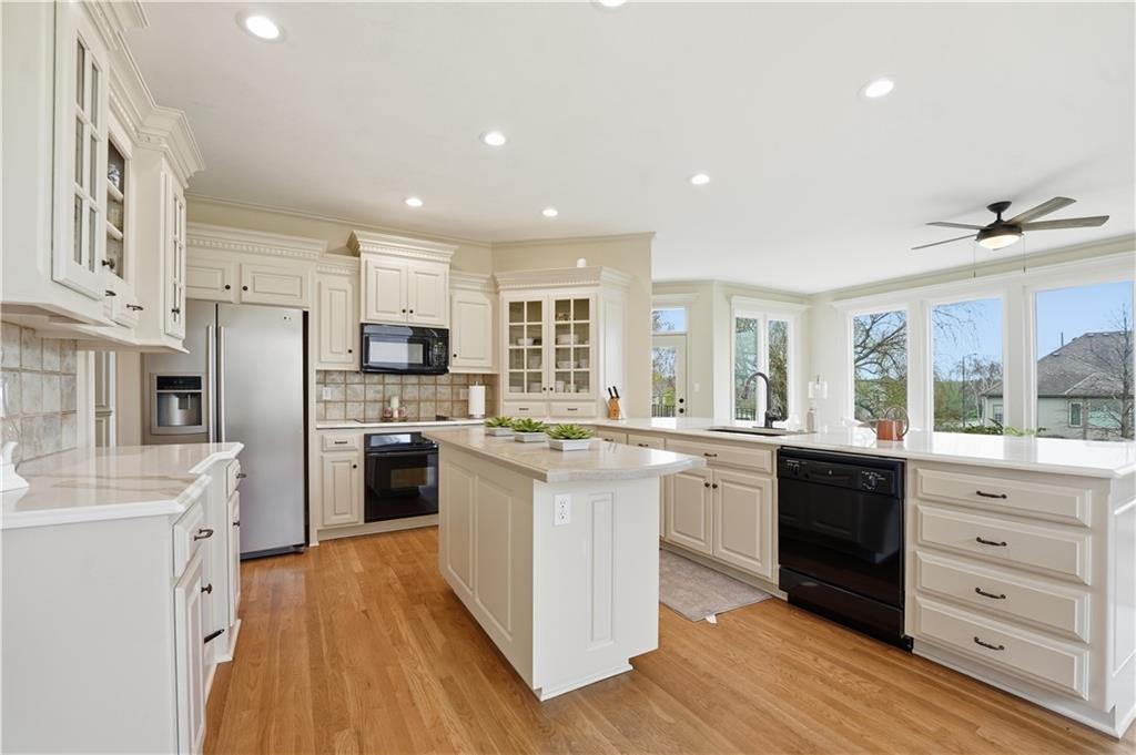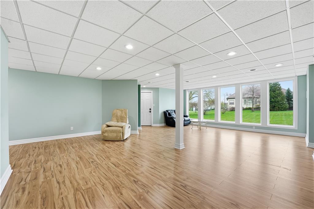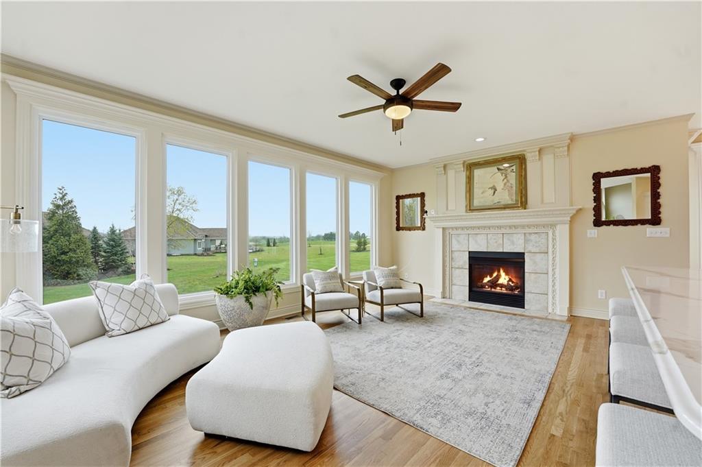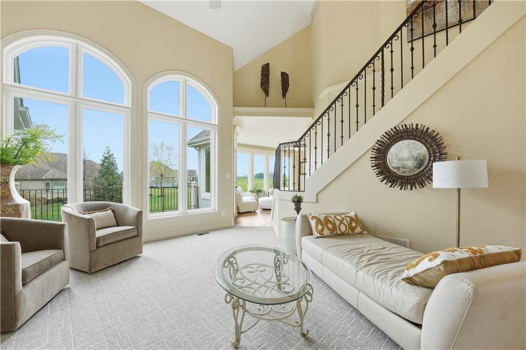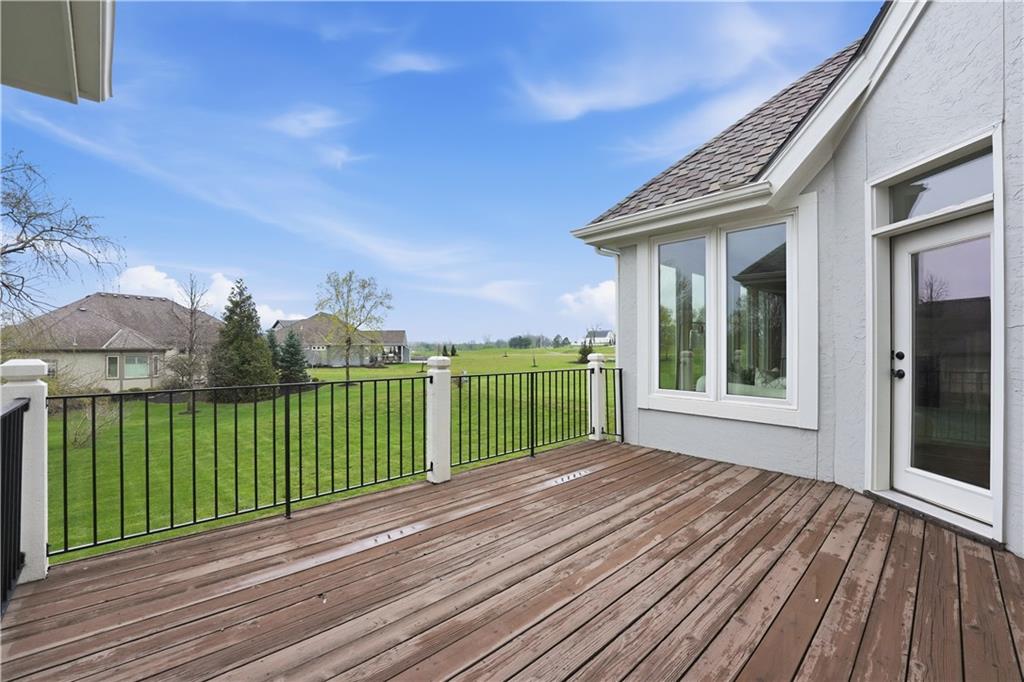 Spacious one-level living in the highly sought-after Tiffany Greens community in Kansas City, MO, offering exceptional views and an ideal layout for both everyday living and entertaining. This light-filled home features soaring ceilings, expansive picture windows, and elegant formal sitting and dining areas, along with a generous great room perfect for gatherings. The chef’s kitchen is designed to impress with abundant cabinetry, a walk-in pantry, large island, cooktop, built-in oven, and stunning countertops. The main-level primary suite provides peaceful views and a well-designed walk-in closet with custom built-ins. Upstairs, you’ll find spacious bedrooms with ample closets and private baths, ideal for family or guests. The finished walk-out lower level adds valuable living space, including a private fifth bedroom, full bath, family room with wet bar, and a large recreation area perfect for a pool table, ping pong, or shuffleboard. Outdoor living is just as inviting with a covered patio, flat usable yard, and a composite deck overlooking the space. Conveniently located near shopping, dining, and major highways, this home offers easy access to all that Kansas City has to offer while enjoying the amenities of Tiffany Greens golf course living. Tiffany Greens is an 18 hole golf course with full service clubhouse, golf simulators, leagues and events!