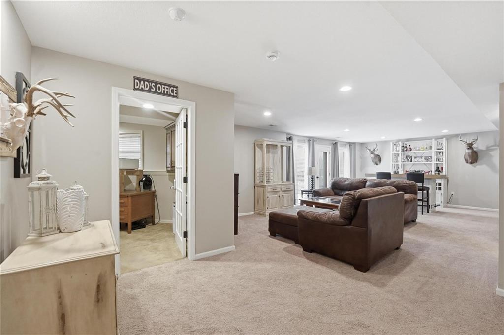 This beautifully designed 1.5-story home offers space, character, and a layout that truly stands out, along with an abundance of storage throughout. The main-level primary suite provides a private retreat, featuring a barn-style sliding door leading to the updated bathroom complete with a jetted tub, separate shower, double vanity with built-in cabinetry, a private toilet room, and a large walk-in closet with custom shelving. Just off the entry, you’ll find a formal dining room, with the living room straight ahead showcasing dramatic floor-to-ceiling windows, a stunning see-through fireplace, and an open view to the second-floor balcony above. The bright, eat-in kitchen features floor-to-ceiling windows, granite countertops, a rustic painted island, and stainless steel appliances—perfect for both everyday living and entertaining. Adjacent to the breakfast area is a cozy sitting room with access to the see-through fireplace and direct entry to the brand-new deck overlooking the fenced backyard—ideal for outdoor living. Upstairs, you’ll find three additional bedrooms. Bedrooms two and three are connected by a Hollywood-style bathroom, while the third bedroom also offers hallway access—perfect for guests. The finished lower level adds even more living space with a media area, dry bar, sitting area, full bathroom, and two additional rooms perfect for a home office, gym, or hobby space. Fresh paint inside and out, thoughtful updates, and inviting spaces throughout make this home move-in ready and a must-see.