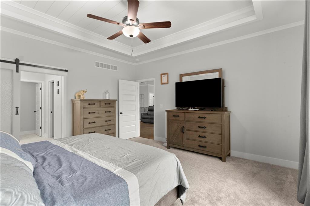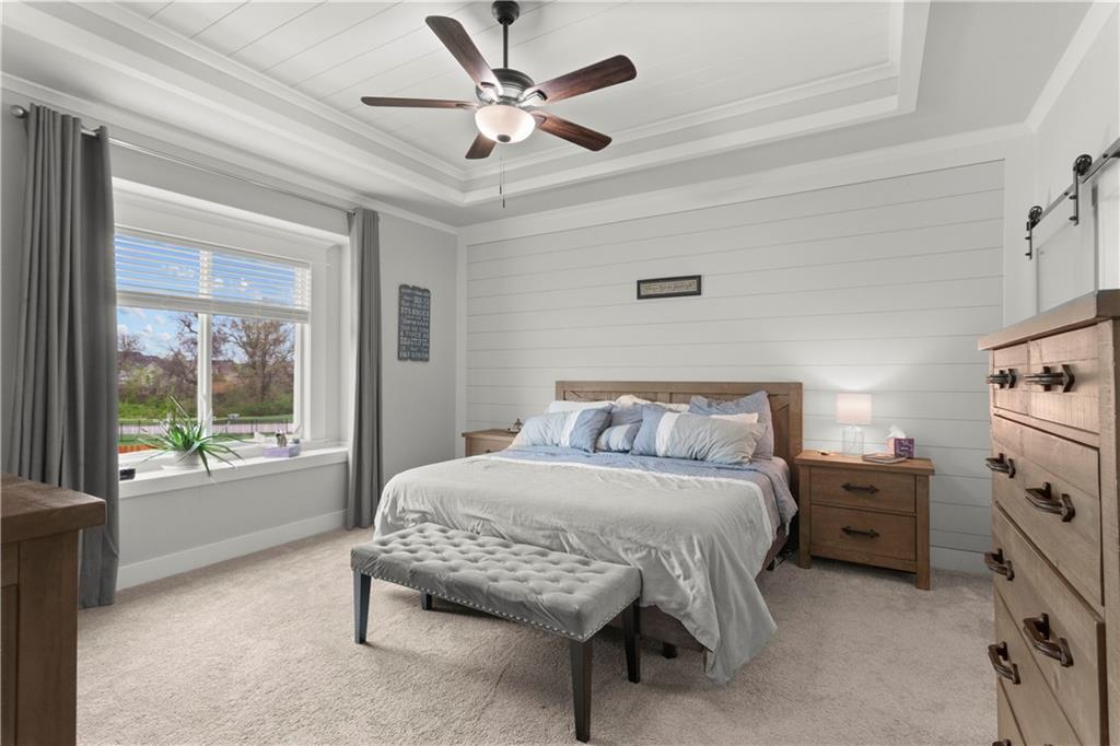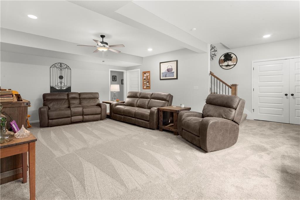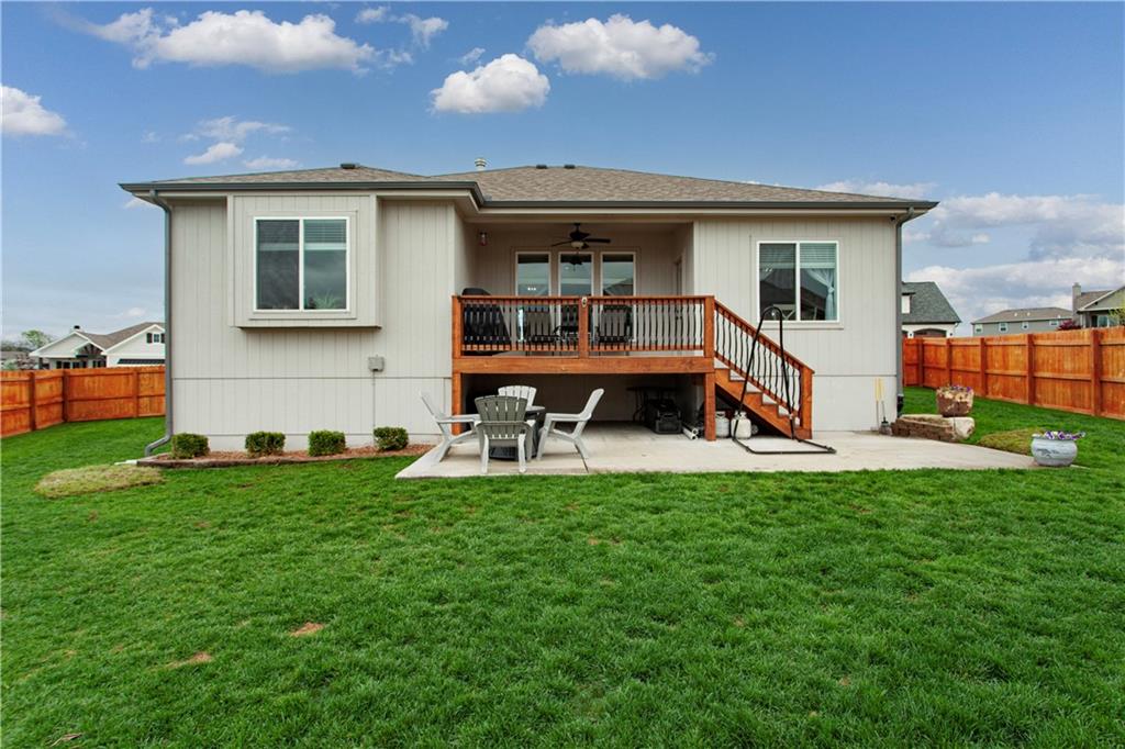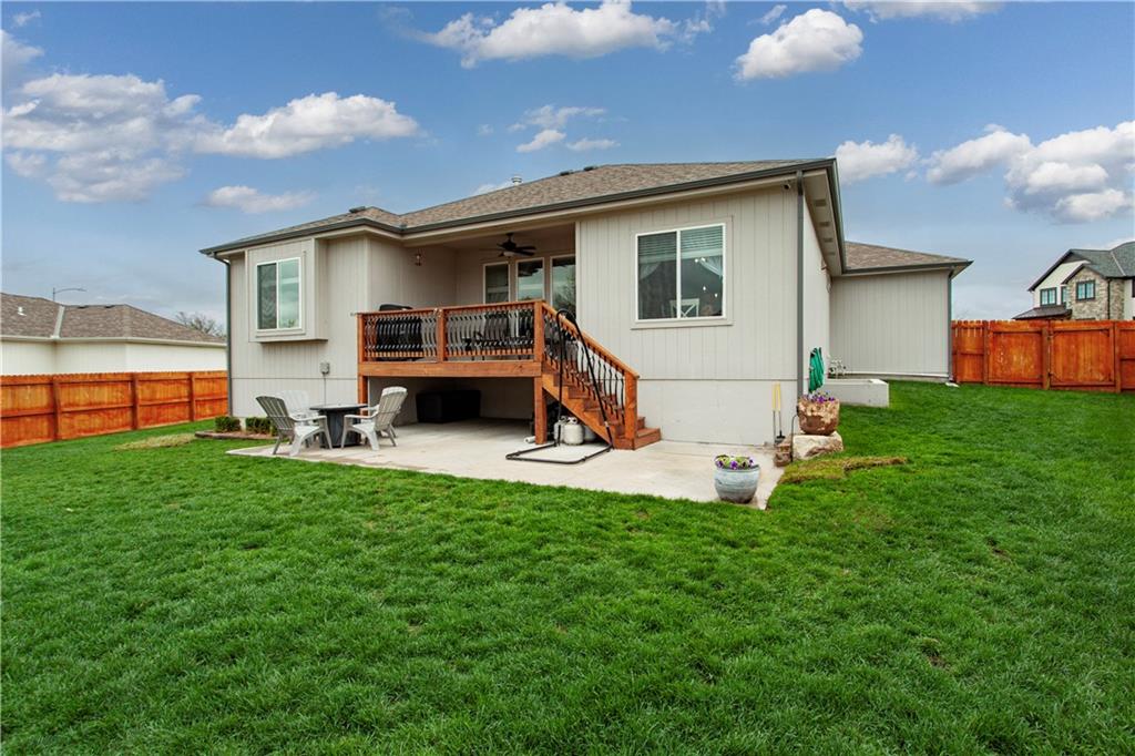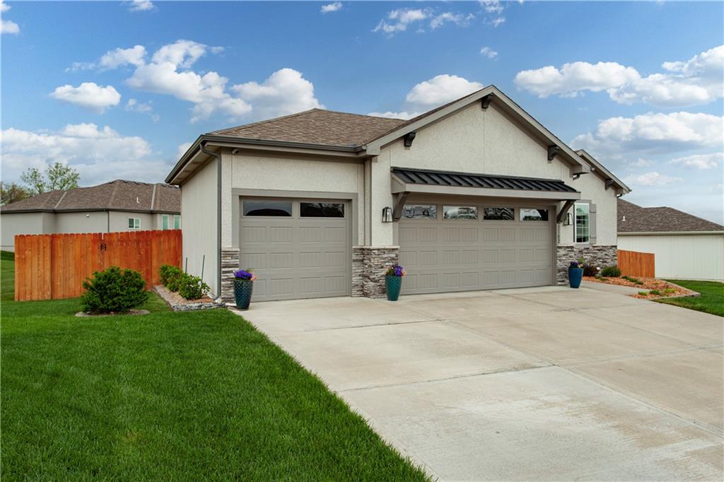 Located in the sought-after Woodbury subdivision, this beautifully maintained reverse 1.5-story home offers 4 bedrooms and 3.5 bathrooms in a thoughtfully designed layout. Only 6 years old, this home combines modern style with everyday comfort. The spacious kitchen features white painted cabinets, an oversized island perfect for gathering and entertaining. The open floor plan flows seamlessly into the main living areas, creating an inviting space for family and guests alike. Keep the lawn lush and green with help from the irrigation system. This home also offers a wood private fenced backyard. This move-in-ready home offers the perfect blend of style, function, and neighborhood amenities in one of Grain Valley's most popular communities.