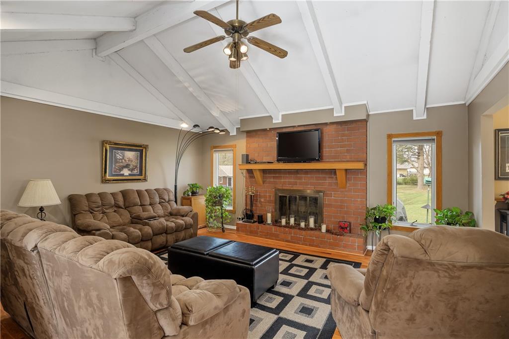 True ranch living in Stonecrest, tucked away on a quiet cul-de-sac. This well-maintained home offers three bedrooms on the main level, including a primary suite, along with two full bathrooms upstairs and a third full bathroom on the lower level. The main floor features a formal living room, an eat-in kitchen, and a comfortable great room with a fireplace, giving you multiple living spaces while maintaining a functional layout. The finished lower level adds a large family room with a second fireplace, a full bathroom, utility space, and plenty of storage. The home features a brick front, freshly painted siding, and a level backyard that offers a quiet, private feel. A two-car garage and off-street parking complete the setup. Located in an established neighborhood, this home offers a layout and setting that’s hard to find.